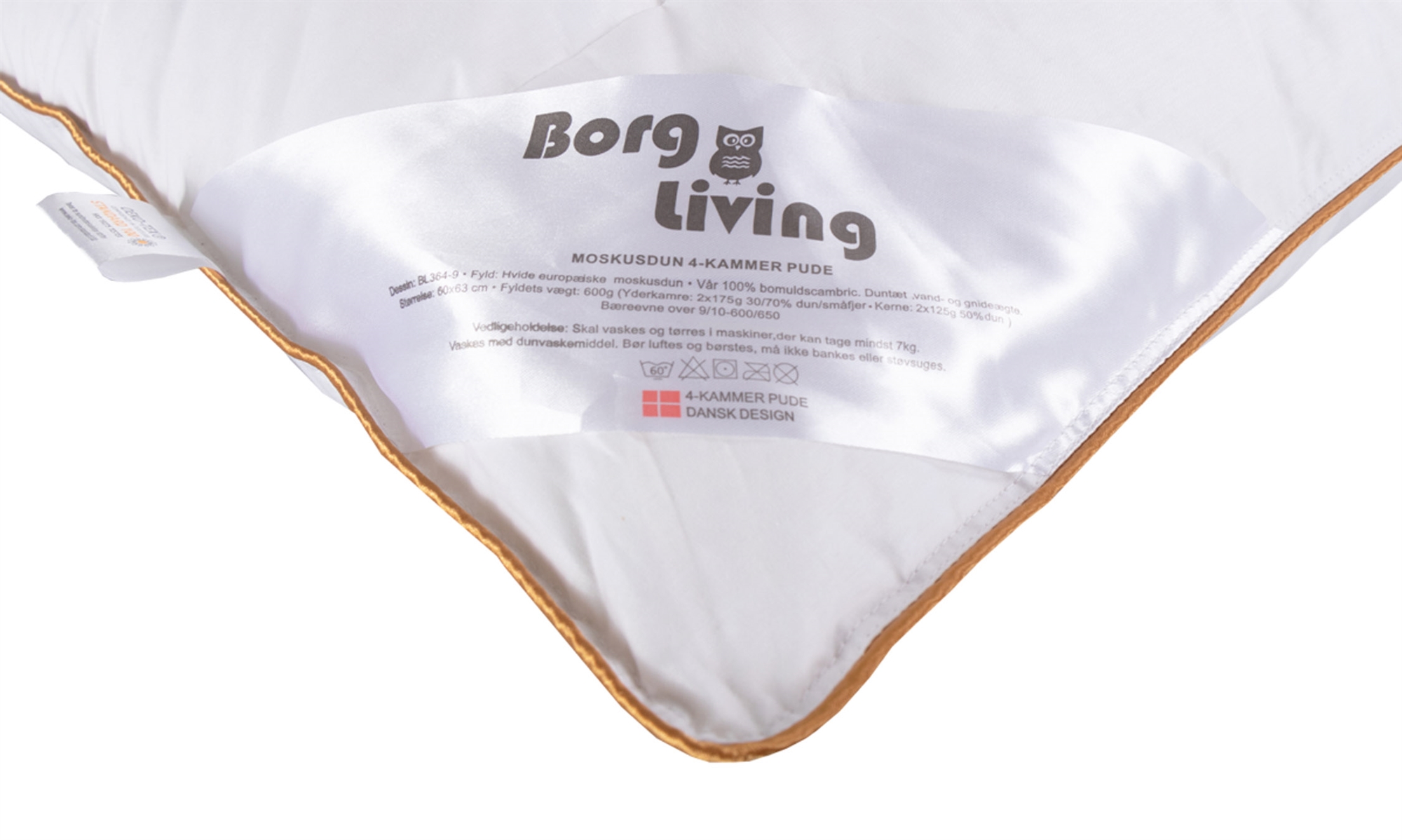 Framsidan »Kuddar 4 kamrar myskdun kudde - 60x63 cm - Medium kudde med myskdun - Borg Living Spara51% Borg Living 1.999,00985,00SEKSpara 1.014,- I lager Trustpilot Antal Lägg i varukorgen Se mer från: Borg Living Artikelnummer:BL364-9 Läs vår kuddguide Läs om underhåll av täcken och kuddar Se vårt stora utbud av kuddfodral Har du frågor om produkten? Myskkudde - Hög kuddeBärighet: Över 9Borg Living Storlek: 60x63 cm Typ: Hög kudde i myskdun Varumärke: Borg Living Konstruktion: Medelhög/hög kudde med fyra kammare Fyllning: Vit europeiskt myskdun Fyllnadsvikt: 600 g Yttre kammare: 2x 175 g Kärna: 2x 125 g - över 50% dun Bärighet: Över 9/10 (Gammal mätmetod) - 650 (Ny mätmetod) Stoppning: 100% duntät bomullsbatist Tvätt: 60° (Viktigt att användaEnzymfritt tvättmedel) Torktumling: Ja, ska torktumlas med torkbollar Garanti: 2 år Certifiering: STANDARD 100 by OEKO-TEX® (HKX 19275) Borg Living hög kudde med myskdun är en kudde av hög kvalitet och stöd. Kuddens 4 kammare säkerställer optimal fördelning av fyllningen och maximalt stöd under hela natten. Kärnan med över 50% dun ger en mjuk och bekväm bas, medan de yttre kamrarna ger bra nackstöd. Kudden är tillverkad av duntät bomullscambric vilket gör den andningsbar och absorberande. Kudden är för dig som vill ha en kudde som inte tappar formen eller luften. Den är också optimal för dig som sover på sidan och behöver extra stöd för att slappna av. Se vårt stora utbud av sängkläder i 140x200 cm här Det danska märket Borg Living producerar exklusiva serier av täcken, kuddar och hemtextilier för ditt hem. Varumärket, som etablerades 2013, är känt för sin innovation inom kvalitet och design. Borg Livings fantastiska produkter bidrar till en optimal och skön nattsömn och inreder ditt hem med moderna och läckra hemaccessoarer. Tillbaka till Kuddar Du kanske också är intresserad av: Silkeskudde - 60x63 cm - "Medium" kudde - Superior - Nordic ComfortSilkeskudde Medium - SuperiorSilk Nordic Comfort Microgel + SilkFX mullbärssilke 1.599,00 SEK999,00 SEK
