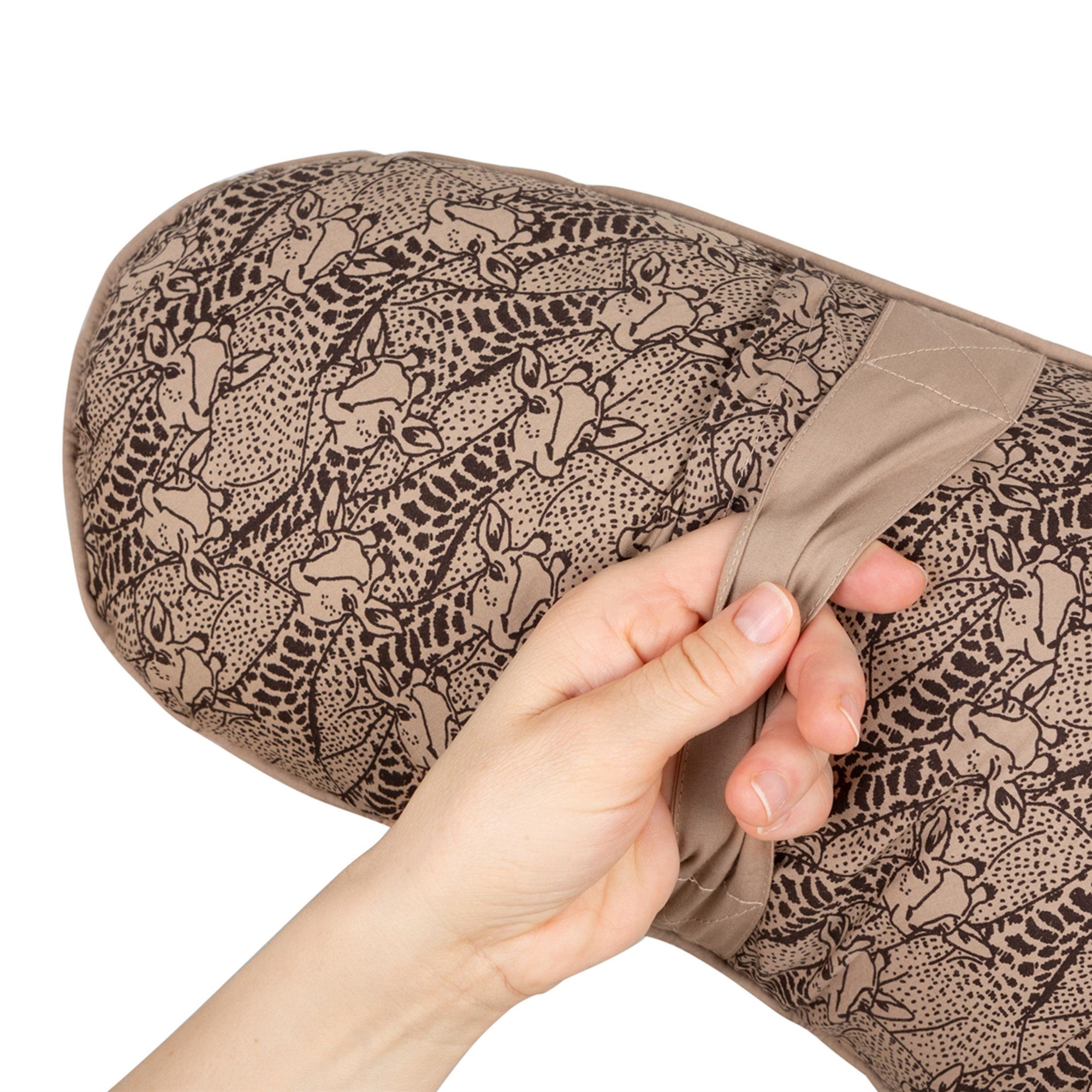 Amningskudden från Müslí by Green Cotton med giraffmönster är skapad med fokus på både komfort, funktionalitet och hållbarhet.