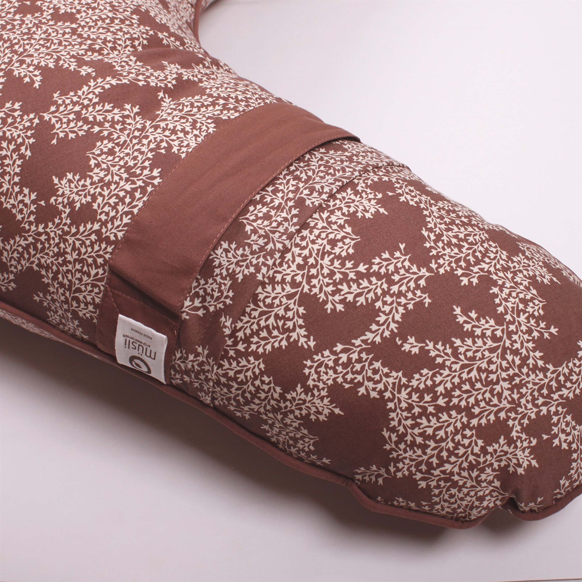 Amningskudden från Müslí by Green Cotton i ett fint tryck med små blad är skapad med fokus på både komfort, funktionalitet och hållbarhet.