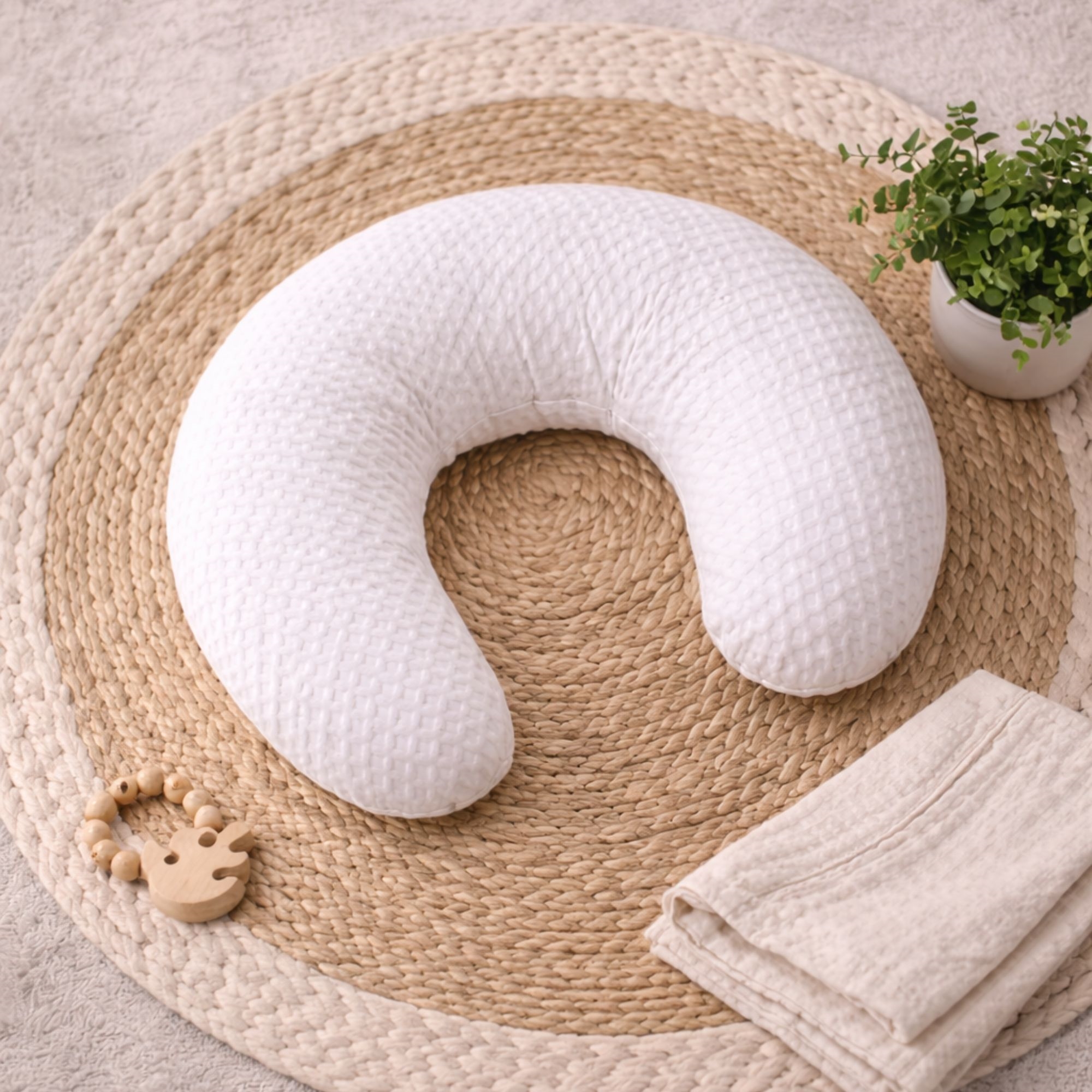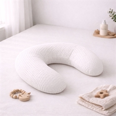 Denna exklusiva amningskudde från Turiform är skapad för dig som önskar maximal komfort och stöd när du ammar. Amningskudden är designad i ett vackert, vävt kreppsängkläder som ger en lätt våfflad textur och ett elegant uttryck. Den detaljerade strukturen i tyget är både vacker att se på och behaglig att röra vid, vilket gör amningsstunden extra mysig för både mamma och baby. Kreppsängkläder-kvaliteten är tillverkad av 100% bomull och är känd för sin luftiga, andningsbara och mjuka väv.