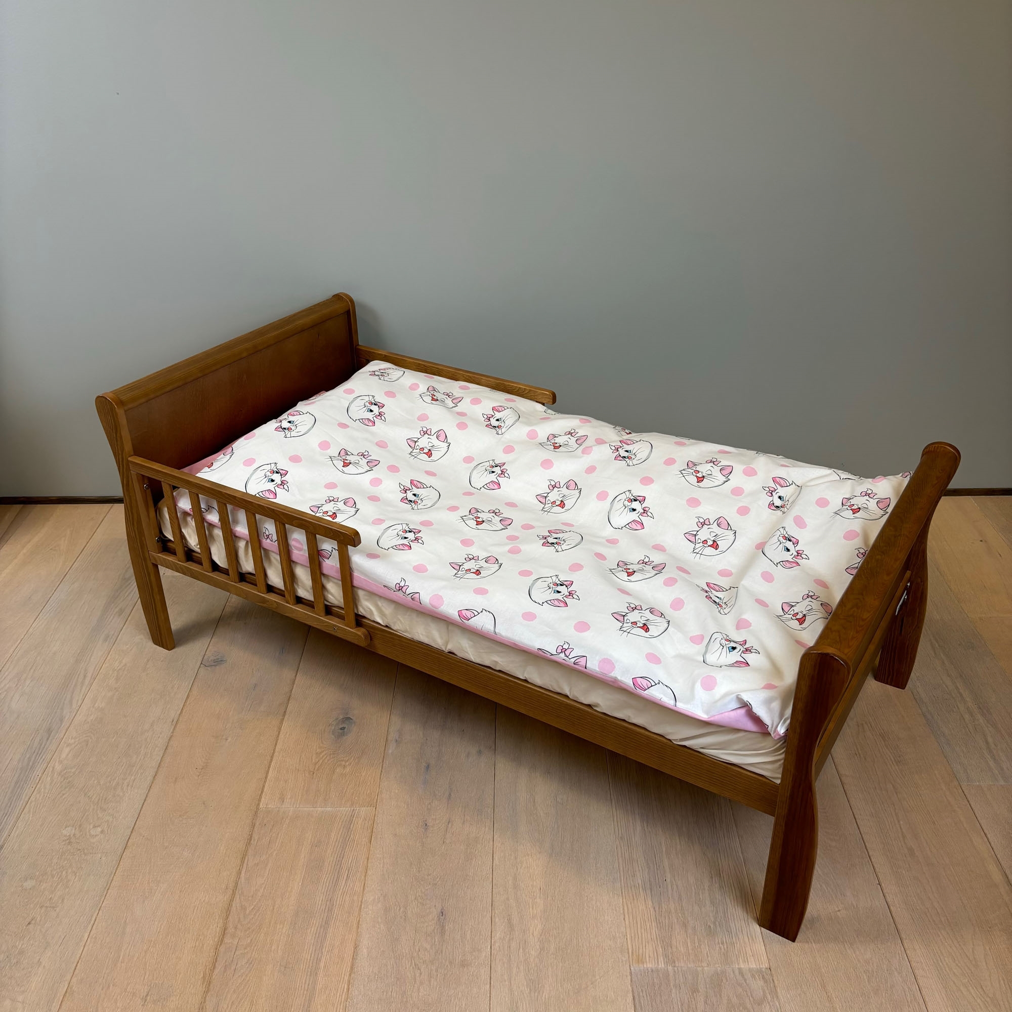 Framsidan »Sängkläder » Sängkläder för barn » Junior sengetøy 100x140 cm Aristocats sengetøy 100x140 cm - Junior sengesett med Marie - Vendbart motiv - 100% bomulls sengetøy Spara40% Borg Living 499,00299,00SEKSpara 200,- I lager Trustpilot Antal Lägg i varukorgen Se mer från: Borg Living Artikelnummer:1921-8 Läs vår sengetøyguide Se vårt stora utbud av lakan Se vårt stora utbud av täcken 100x140 Har du frågor om produkten? Mjukt & andningsbart100% mjuk bomullOEKO-TEX® certifierat Påslakan: 100x140 cm Örngott: 40x45 cm Materiale: 100% mjuk bomull Färg: Ljusrosa Motiv: Aristocats Marie Design: Vändbart - framsida med motiv av Marie från Aristocats och baksida med små motiv Stängning: Påslakan med knappar och örngott med överlapp Tvätt: 60° Torktumling: Ja Tål strykning: Ja Certifiering: STANDARD 100 by OEKO-TEX® (2011PK0073 AITEX). Din garanti för att produkten är fri från skadliga kemikalier. Mjukt junior sengetøy i 100% bomull, med en smart och igenkännbar design av katten Marie från Aristocats. Producerat med lätta och andningsbara bomullsfibrer ger detta sengesett en känsla av mjukhet som gör att täcket faller naturligt runt ditt barn. Balansen i naturlig komfort från det mjuka materialet och det mysiga Aristocats-designen gör detta set till en säker favorit hos ditt barn. Skäm bort ditt barn med detta söta Aristocats Marie junior sengetøy i 100% bomull – perfekt för små fans av den älskade Disney-klassikern. Sengetøyet har den charmiga vita katten Marie, känd för sin elegans, charm och söta attityd. Det mjuka bomullstyget känns behagligt mot huden och säkerställer en god och lugn natts sömn. Materialet är andningsbart och slitstarkt, vilket gör det idealiskt för daglig användning. Sengesettet är OEKO-TEX® certifierat, vilket garanterar att det är testat för skadliga ämnen och tryggt för barn att sova med. Sengetøyet är lämpligt för daglig användning då det är lätt att tvätta och tål 60°. Utan behov av strykning behåller det sin mjukhet och färg även efter flera tvättar. För barnet bör sängen vara en trygg plats och alla element ska tillsammans skapa mjuka och härliga omgivningar för barnet att finna ro i. Använd gärna barnets intressen för att skapa ett tryggt sovrum för barnet. Hos oss kan du hitta ett stort utbud av tillbehör till sängen och barnrummet, från lakan till täcken, kuddar, sengetøy och mycket mer, samt massor av produkter med alla barnens favoriter på. Allt detta är element som kan bidra till att skapa rätt sovmiljö och rum för ditt barn. Här kan du hitta fina och mjuka kvalitetslakan Tillbaka till Junior sengetøy 100x140 cm Du kanske också är intresserad av: Junior sengetøy 100x140 cm - Mykt hvitt sengesett i 100% egyptisk bomullssatin - Turiform sengelinnedHøy kvalitet Ekstra fin, myk & pustende Jacquardvevd 799,00 SEK485,00 SEK Madrasskydd för barn - 70x140 cm - Kokäkta bomull - Borg LivingAndningsbar och allergivänlig Mjuk bomull STANDARD 100 by OEKO-TEX®-certifierad 599,00 SEK349,00 SEK Barntäcke - myskdun - 100x140 cm - helårs barntäcke - Borg Living duntäcke100% myskduntäcke Bärighet: över 12 Helårstäcke Rekommenderat försäljningspris : 1.595,00 Spara : 610,00 2.599,00 SEK985,00 SEK