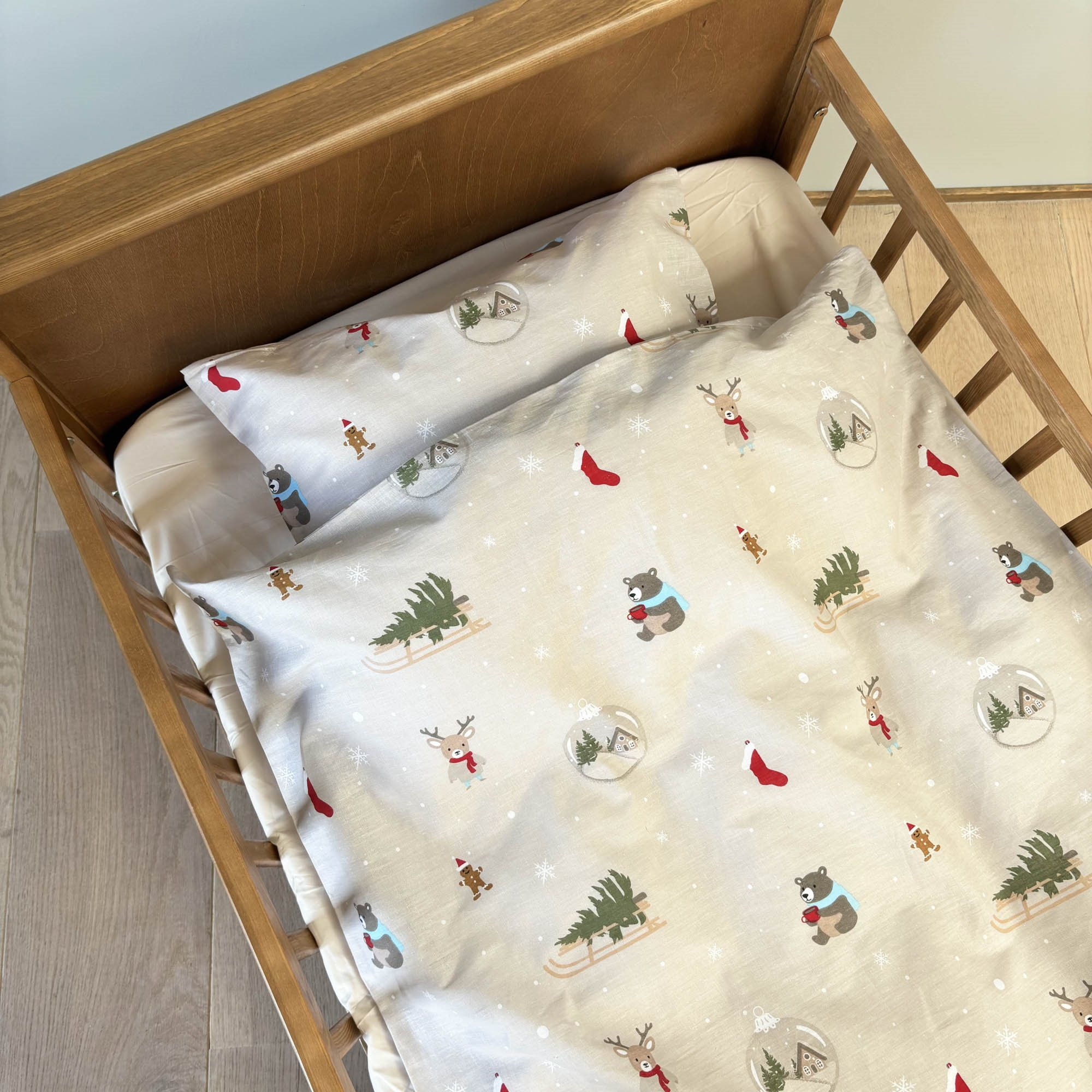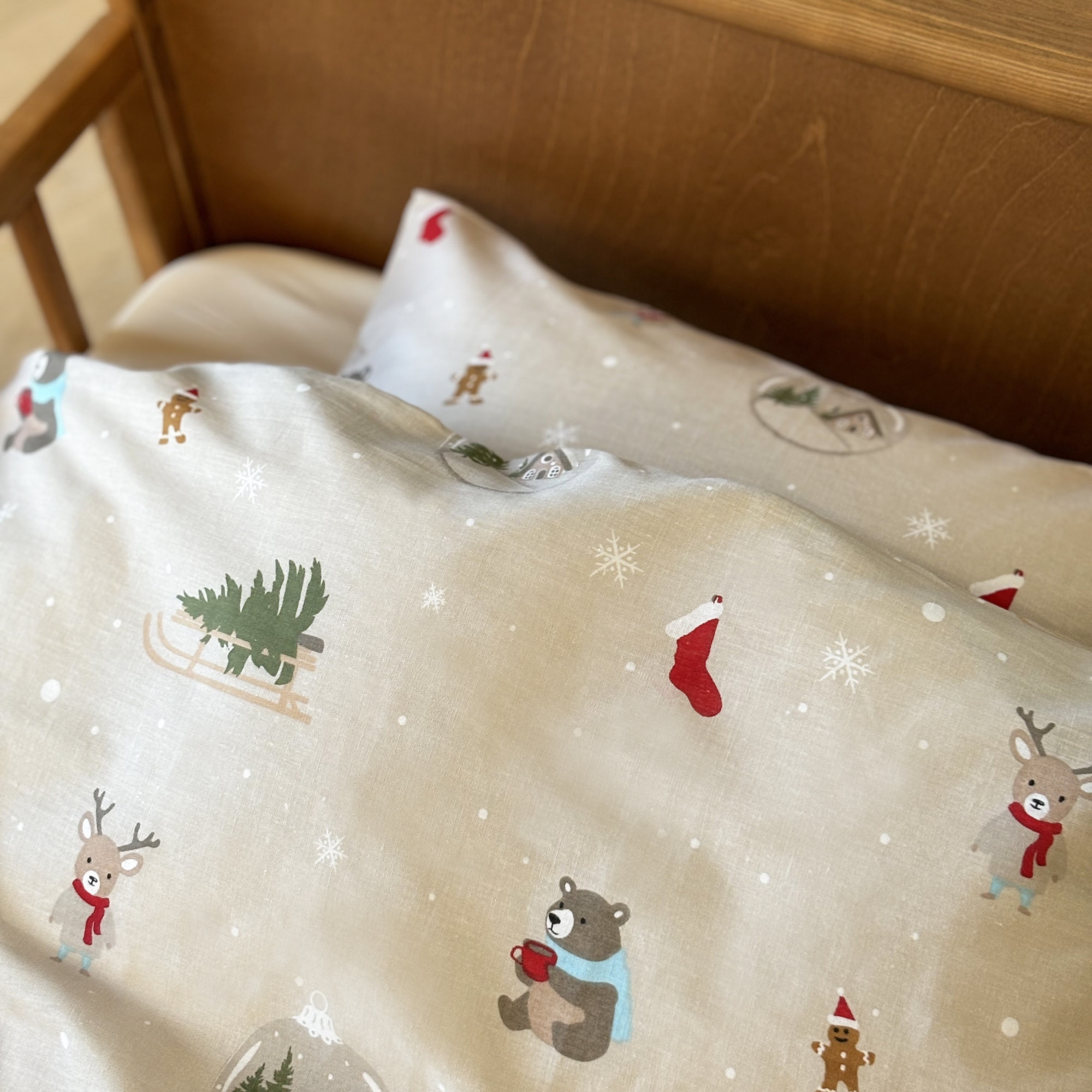 Framsidan »Sängkläder » Sängkläder för barn » Sängkläder för baby 70x100 cm Baby julesengetøy 70x100 cm - Jule sengesæt med juleikoner - Cozy Christmas - 100% blødt bomulds sengelinned Spara40% By Mats 249,00149,00SEKSpara 100,- I lager Trustpilot Antal Lägg i varukorgen Se mer från: By Mats Artikelnummer:12165-7 Läs vår guide för sängkläder Se vårt stora utbud av lakan Se vårt stora utbud av täcken 70x100 Har du frågor om produkten? Härligt mjuktAndningsbart och bekvämtFri från kemikalier - OEKO-TEX® certifierat Påslakan: 70x100 cm - baby sengesæt Örngott: 40x45 cm Materiale: 100% mjuk bomull Färg: Beige Motiv: Juleikoner Stängning: Påslakan med knappar, örngott med överlapp Tvätt: 60° Torktumling: Ja Tål strykning: Ja Certifiering: STANDARD 100 by OEKO-TEX® (2016OK0709 AITEX). Din garanti för att produkten är fri från skadliga kemikalier. Mjukt julesengetøy i 100% bomull med juleikoner. Producerat med lätta och andningsbara bomullsfibrer ger detta sengesæt en känsla av mjukhet som gör att påslakanet faller naturligt runt ditt barn. Balansen mellan naturlig komfort från det mjuka materialet och juldesignen gör detta set till en säker julfavorit för ditt barn. Detta charmiga julesengesæt har en söt design med olika juleikoner. Baby sengetøy med julemotiv kommer att skapa mycket julstämning i barnrummet. Baby sengetøyet passar till en vanlig babydyne storlek och kan användas i sängen, i babynestet, i barnvagnen eller var dynan än tas med. Babydynan är ofta fast runt barnet under många timmar av dygnet eftersom den skapar lugn, igenkänning, trygghet och värme för babyn – inte bara under den första tiden utan ofta upp till 2-3 års ålder. Den används därför mycket och tvättas ofta, och därför önskar de flesta också mjukt sengesæt i bomull av hög kvalitet. Detta mjuka baby sengetøy är gjort av 100% mjuk bomull av hög kvalitet som har goda naturliga egenskaper som alla tillför något bra till sengesætet. Bland annat är bomull andningsbart, har hög absorptionsförmåga, är härligt mjukt och behagligt runt barnets kropp och mot huden. Påslakanet är tillverkat med smarta tryckknappar medan örngottet har en praktisk överlappning. Dessutom är det lätt att tvätta, vilket också är en liten gåva när det gäller bebisar och små barn eftersom tid ibland kan vara en bristvara med en liten baby. Se även vårt stora utbud av fint och stilfullt babytillbehör här Vi rekommenderar att man har mer än ett set sengetøy till baby. Med en liten baby händer det ofta olyckor av olika slag. Det är därför skönt att ha ett extra set liggande redo att byta till när olyckan är framme. De flesta mödrar upplever att 3-4 set baby sengetøy är bra att ha i garderoben. Detsamma gäller baby lakan, både till barnvagn och babysäng. Dessutom kan det vara riktigt skönt att ha en extra babydyna liggande eftersom dessa ofta tar lite längre tid att torka. På så sätt kan du vara säker på att ditt barn inte saknar sängkläder när det ska tvättas eller när klockan är sen på natten. Du hittar vårt sortiment av kvalitetslakan för barn här Tillbaka till Sängkläder för baby 70x100 cm Du kanske också är intresserad av: Täcke för baby 70x100 cm - myskdun helårstäcke för baby - Borg Living täcke100 % myskdun - Borg Living Bärighet: Över 12 Täcke för baby 1.899,00 SEK685,00 SEK