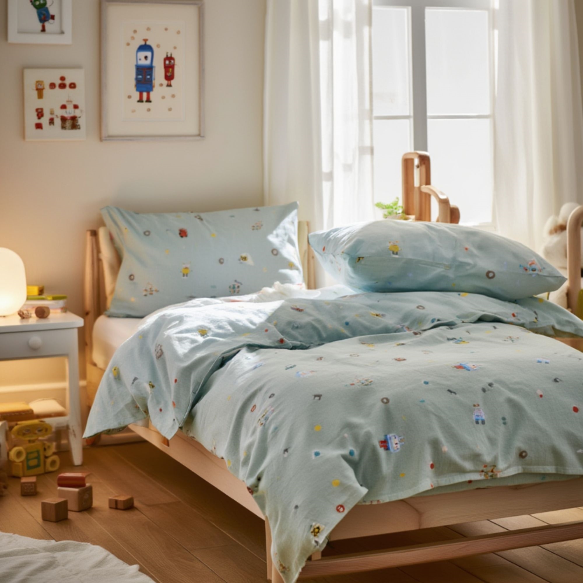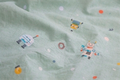 Framsidan »Sängkläder » Sängkläder för barn » Sängkläder för baby 70x100 cm Baby sängkläder 70x100 cm - Blått sängset med små robotar - 100% mjukt bomullssänglinne Spara40% By Mats 249,00149,00SEKSpara 100,- I lager Trustpilot Antal Lägg i varukorgen Se mer från: By Mats Artikelnummer:12152-7 Läs vår sängklädesguide Se vårt stora utbud av lakan Se vårt stora utbud av täcken 70x100 Har du frågor om produkten? Härligt mjukt Andningsbart och bekvämtFri från kemikalier - OEKO-TEX® certifierat Påslakan: 70x100 cm - baby sängset Kuddfodral: 40x45 cm Material: 100% mjuk bomull Färg: Blå Mönster: Små robotar Stängning: Påslakan med knappar, kuddfodral med överlapp Tvätt: 60° Torktumling: Ja Tål strykning: Ja Certifiering: STANDARD 100 by OEKO-TEX® (2016OK0709). Din garanti för att produkten är fri från skadliga kemikalier. Mjukt baby sängkläder i 100% bomull, med små robotar. Tillverkat med lätta och andningsbara bomullsfibrer ger detta sängset en känsla av mjukhet som gör att påslakanet faller naturligt runt ditt barn. Balansen i naturlig komfort från det mjuka materialet och den mysiga designen gör detta set till en säker favorit hos ditt barn. Underbart sängset med superfint tryck av robotar. Detta fina all-over-tryck i dämpade färger skapar en avslappnad stämning och mysig miljö för sömn. Baby sängkläder passar till en vanlig babydyne storlek och kan användas i sängen, i babynestet, i barnvagnen eller var än dynan tas med. Babydynan är ofta fast runt barnet många timmar om dygnet, då den skapar stor ro, igenkänning, trygghet och värme för babyn - inte bara den första tiden, utan ofta upp till 2-3 års ålder. Den används därför mycket och tvättas ofta, och därför önskar de flesta också mjuka sängkläder i bomull av hög kvalitet. Detta mjuka baby sängkläder är gjort av 100% mjuk bomull av hög kvalitet, som innehåller goda naturliga egenskaper som alla tillför något bra till sängsetet. Bland annat är bomull andningsbart, har hög absorberingsförmåga, är härligt mjukt och bekvämt runt barnets kropp och mot huden. Påslakanet är tillverkat med smarta tryckknappar, medan kuddfodralet har en praktisk överlappning. Dessutom är det lätt att tvätta, vilket också är en liten gåva när det gäller bebisar och små barn, då tid ibland kan vara en bristvara med en liten baby. Se även vårt stora utbud av fina och stilfulla babytillbehör här Vi rekommenderar att man har mer än ett set sängkläder till baby. Med en liten baby händer det ofta olyckor av olika slag. Det är därför skönt att ha ett extra set liggande, redo att bytas när olyckan är framme. De flesta mödrar upplever att 3-4 set baby sängkläder är bra att ha i garderoben. Samma gäller baby lakan, både till barnvagn och babysäng. Dessutom kan det vara väldigt bra att ha en extra babydyna liggande, då dessa ofta tar lite längre tid att torka. På detta sätt kan du vara säker på att ditt barn inte saknar sänglinne när det ska tvättas eller när klockan är sen på natten. Du hittar vårt sortiment av kvalitetslakan här för barn Tillbaka till Sängkläder för baby 70x100 cm Du kanske också är intresserad av: Täcke för baby 70x100 cm - myskdun helårstäcke för baby - Borg Living täcke100 % myskdun - Borg Living Bärighet: Över 12 Täcke för baby 1.899,00 SEK699,00 SEK