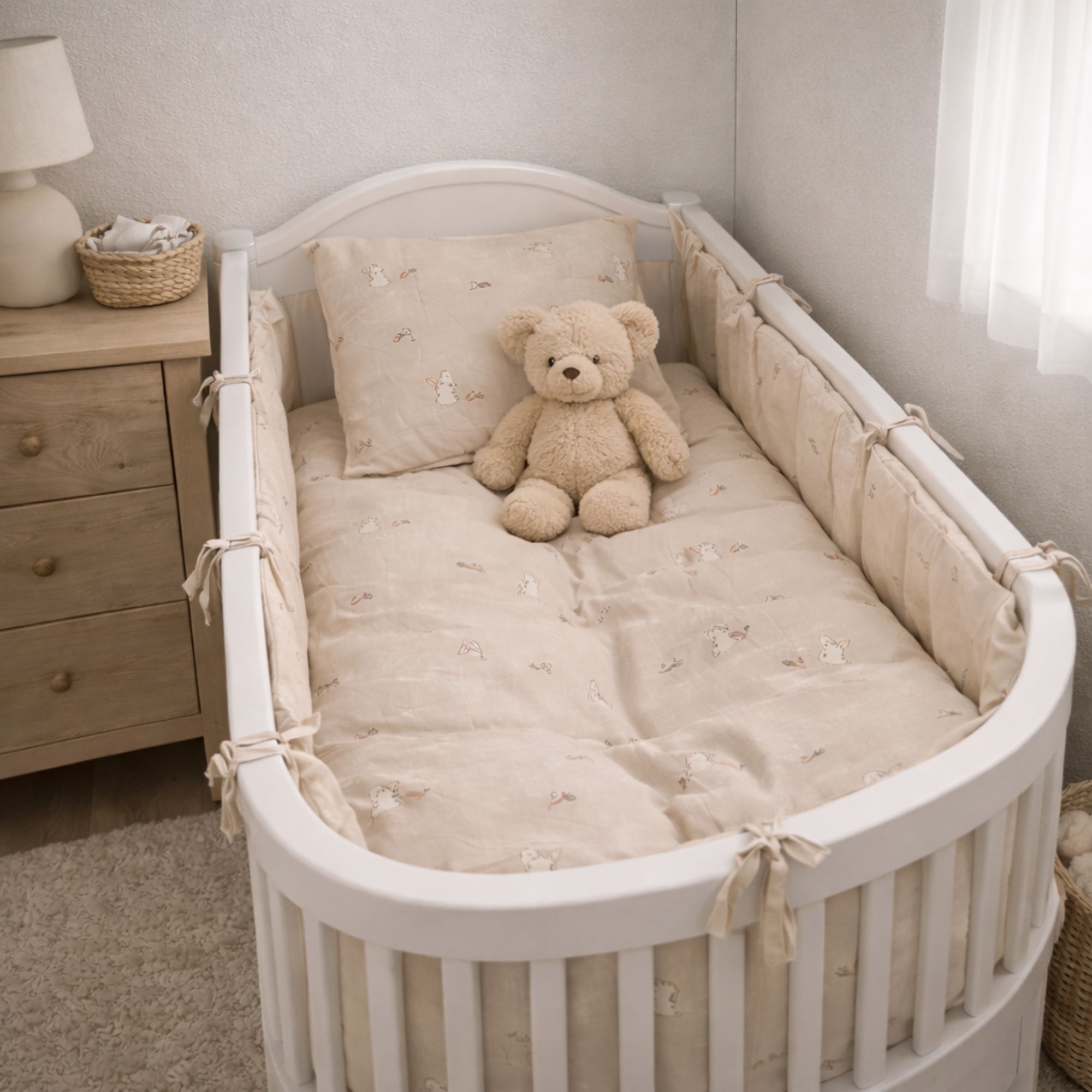 Detta mjuka baby sängkläder är gjort av 100% mjuk bomull av hög kvalitet, som innehåller goda naturliga egenskaper som alla tillför något bra till sängsetet. Bland annat är bomull andningsbart, har hög absorberingsförmåga, är härligt mjukt och behagligt runt barnets kropp och mot huden. Dessutom är det lätt att tvätta, vilket också är en liten gåva när det gäller bebisar och små barn, eftersom tid ibland kan vara en bristvara med en liten baby.