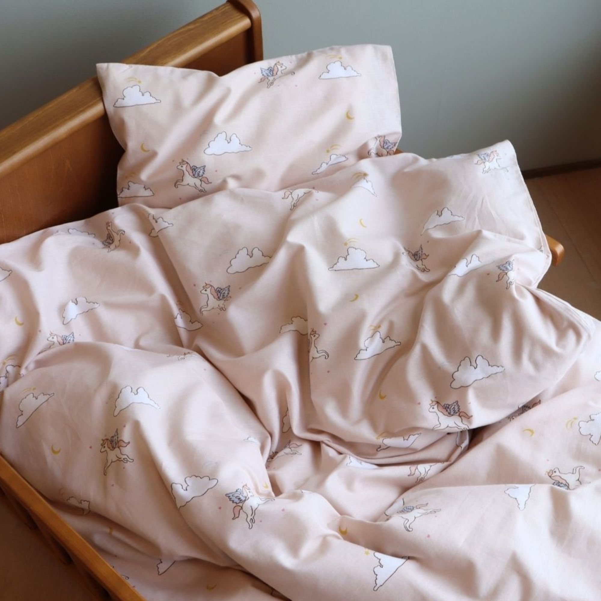 Framsidan »Sängkläder » Sängkläder för barn » Sängkläder för baby 70x100 cm Baby sängkläder 70x100 cm - Ljusrosa sängset med enhörningar och moln - 100% mjukt bomullssänglinne Spara40% By Mats 249,00149,00SEKSpara 100,- I lager Trustpilot Antal Lägg i varukorgen Se mer från: By Mats Artikelnummer:12171-7 Läs vår sängklädesguide Se vårt stora urval av lakan Se vårt stora urval av täcken 70x100 Har du frågor om produkten? Underbart mjuktAndningsbart och bekvämtFri från kemikalier - OEKO-TEX® certifierat Påslakan: 70x100 cm - baby sängset Kuddfodral: 40x45 cm Material: 100% mjuk bomull Färg: Ljusrosa Motiv: Enhörningar och moln Stängning: Påslakan med knappar, kuddfodral med överlapp Tvätt: 60° Torktumling: Ja Tål strykning: Ja Certifiering: STANDARD 100 by OEKO-TEX® (2016OK0709 AITEX). Din garanti för att produkten är fri från skadliga kemikalier. Mjukt baby sängkläder i 100% bomull, med enhörningar och moln. Producerat med lätta och andningsbara bomullsfibrer ger detta sängset en känsla av mjukhet som gör att täcket faller naturligt runt ditt barn. Balansen i naturlig komfort från det mjuka materialet och den mysiga designen gör detta set till en säker favorit hos ditt barn. Sött sängset med tryck av enhörningar och moln. Detta fina all-over tryck skapar en avslappnad stämning och mysig miljö för sömn. Baby sängkläder passar till en vanlig babytäcke storlek och kan användas i sängen, i babynestet, i barnvagnen eller var täcket än tas med. Babytäcket är ofta fast runt barnet många timmar om dygnet eftersom det skapar stor ro, igenkänning, trygghet och värme för babyn - inte bara den första tiden, utan ofta upp till 2-3 års ålder. Det används därför mycket och tvättas ofta, och därför önskar de flesta också mjuka sängkläder i bomull av hög kvalitet. Detta mjuka baby sängkläder är producerat av 100% mjuk bomull av hög kvalitet, som innehåller goda naturliga egenskaper som alla tillför något bra till sängsetet. Bland annat är bomull andningsbart, har hög absorberingsförmåga, är härligt mjukt och bekvämt runt barnets kropp och mot huden. Påslakanet är producerat med smarta tryckknappar, medan kuddfodralet har en praktisk överlappning. Dessutom är det lätt att tvätta, vilket också är en liten gåva när det gäller bebisar och små barn, då tid ibland kan vara en bristvara med en liten baby. Se också vårt stora urval av fina och stilfulla babytillbehör här Vi rekommenderar att man har mer än ett set sängkläder till baby. Med en liten baby händer det ofta olyckor av olika slag. Det är därför skönt att ha ett extra set liggande, redo att bytas när olyckan sker. De flesta mödrar upplever att 3-4 set baby sängkläder är bra att ha i garderoben. Samma gäller baby lakan, både till barnvagn och babysäng. Dessutom kan det vara väldigt bra att ha ett extra babytäcke liggande, eftersom dessa ofta tar lite längre tid att torka. På detta sätt kan du vara säker på att ditt barn inte saknar sänglinne när det ska tvättas eller när klockan är sen på natten. Du hittar vårt sortiment av kvalitetslakan här för barn här Tillbaka till Sängkläder för baby 70x100 cm Du kanske också är intresserad av: Täcke för baby 70x100 cm - myskdun helårstäcke för baby - Borg Living täcke100 % myskdun - Borg Living Bärighet: Över 12 Täcke för baby 1.899,00 SEK699,00 SEK