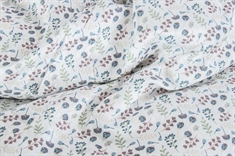 Farge: Hvitt sengesett med blomster og blader
