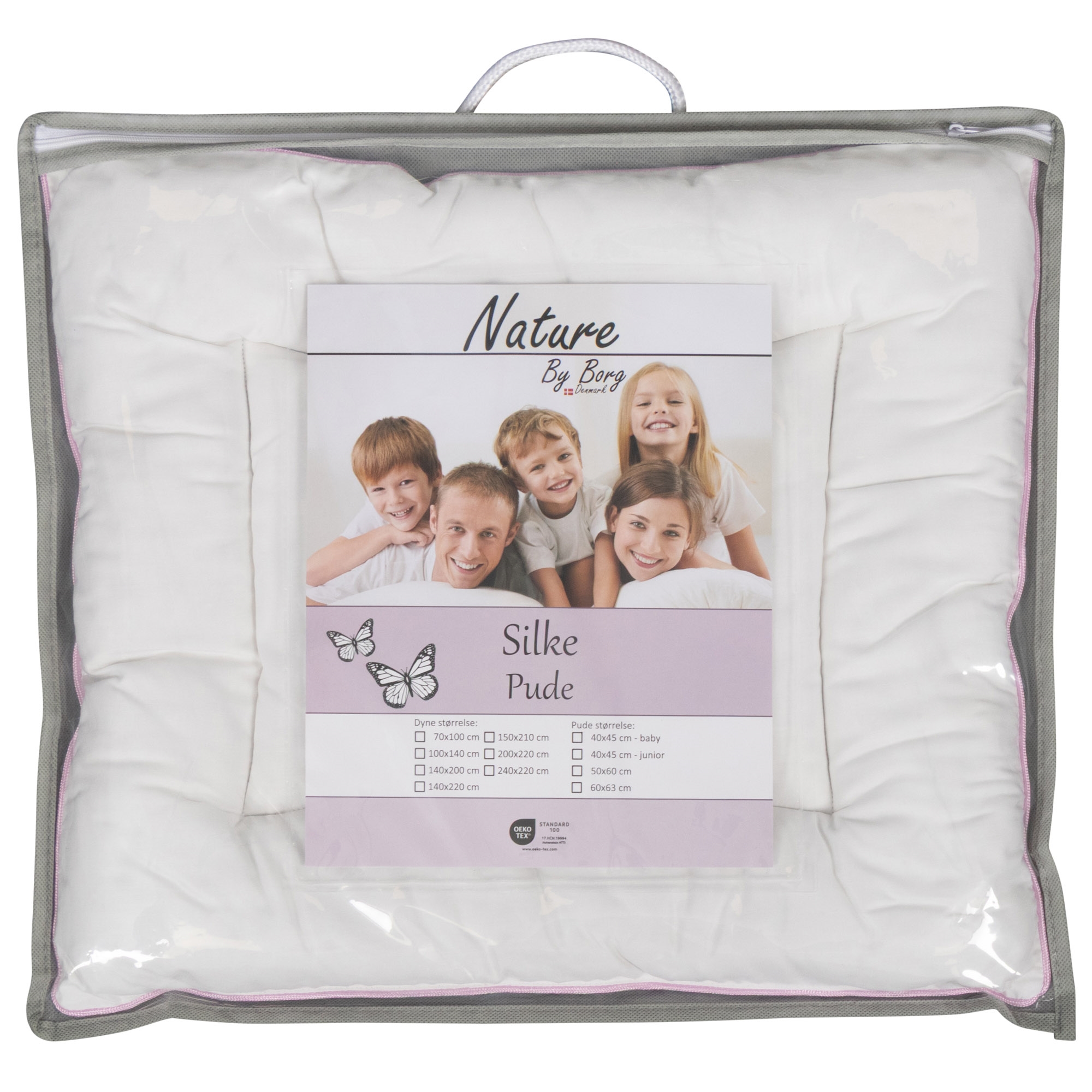 Denna baby sidenkudde från Nature By Borg är en 1-kammars kudde som ger din baby perfekt stöd för nacken. Kudden är designad för bebisar och små barn som behöver en låg kudde, så att huvudet inte ligger för högt. Kudden är fylld med 100% mullbärssilke, ett andningsbart material, och har ett överdrag av det mjukaste bambumaterialet. Detta ger barnet en känsla av lyx och komfort, samtidigt som kudden behåller sin form och ger optimalt stöd.