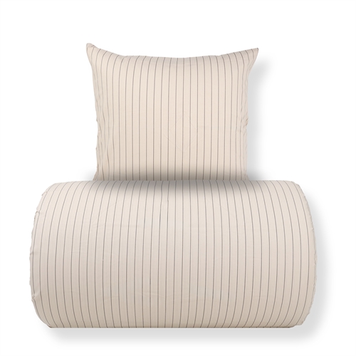 Bäddset i bomull med sandfärgat nålsrandigt mönster