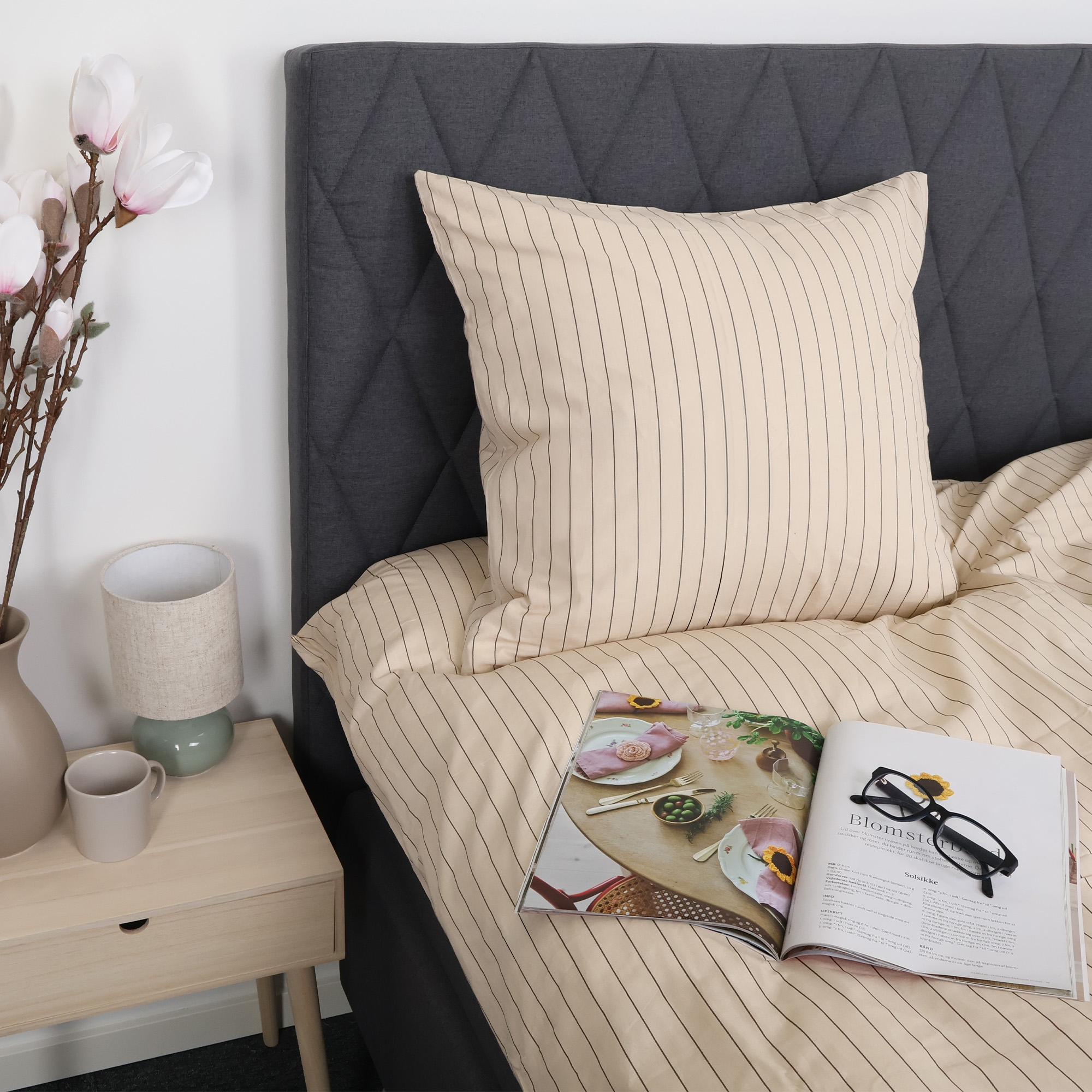 Ge sovrummet ett stilrent och lugnt uttryck med detta eleganta bäddset i bomull från Nordstrand Home. Det klassiska nålsrandiga mönstret i sand skapar en harmonisk atmosfär och passar perfekt i både modern och nordisk inredning.