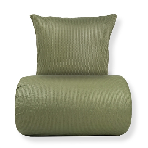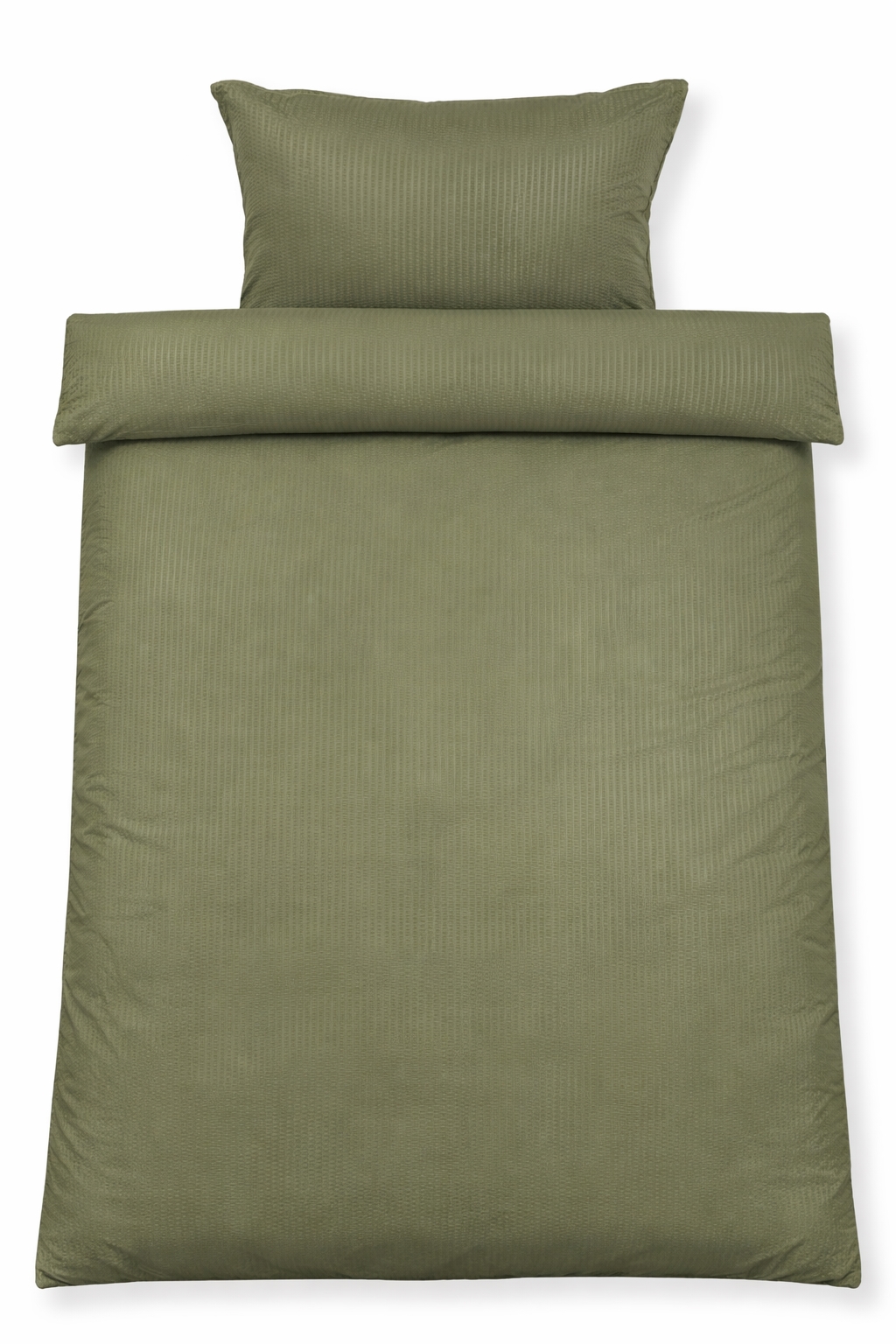Ge sovrummet ett fräscht och avslappnat uttryck med detta gröna microfiber-bäddset i klassisk kreppvävning. Den karaktäristiska kreppstrukturen skapar en lätt våfflad yta som ger sängkläderna ett luftigt och livfullt uttryck samtidigt som det känns behagligt mot huden.
