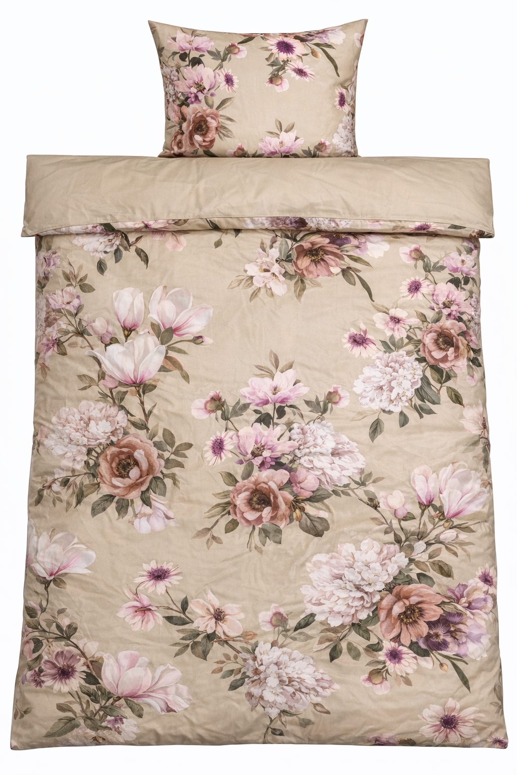 Vändbart bäddset med digitaltryckt blomdesign i 100% bomullssatin