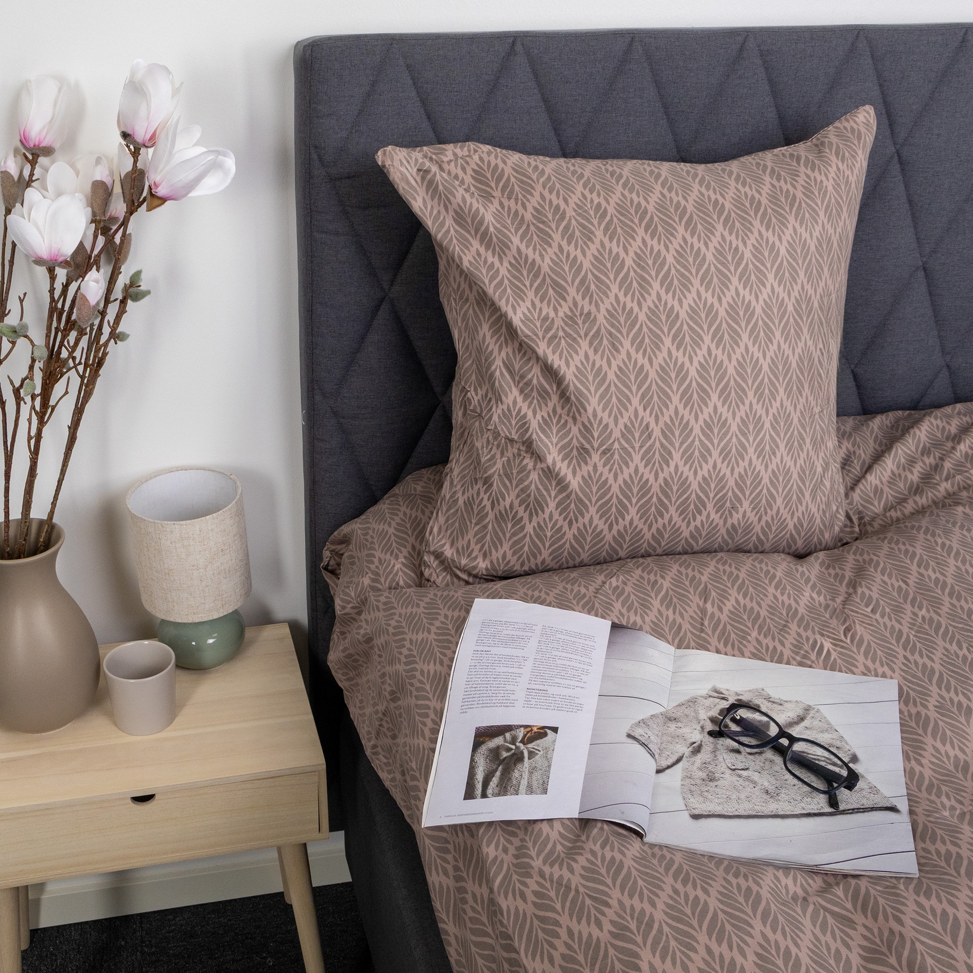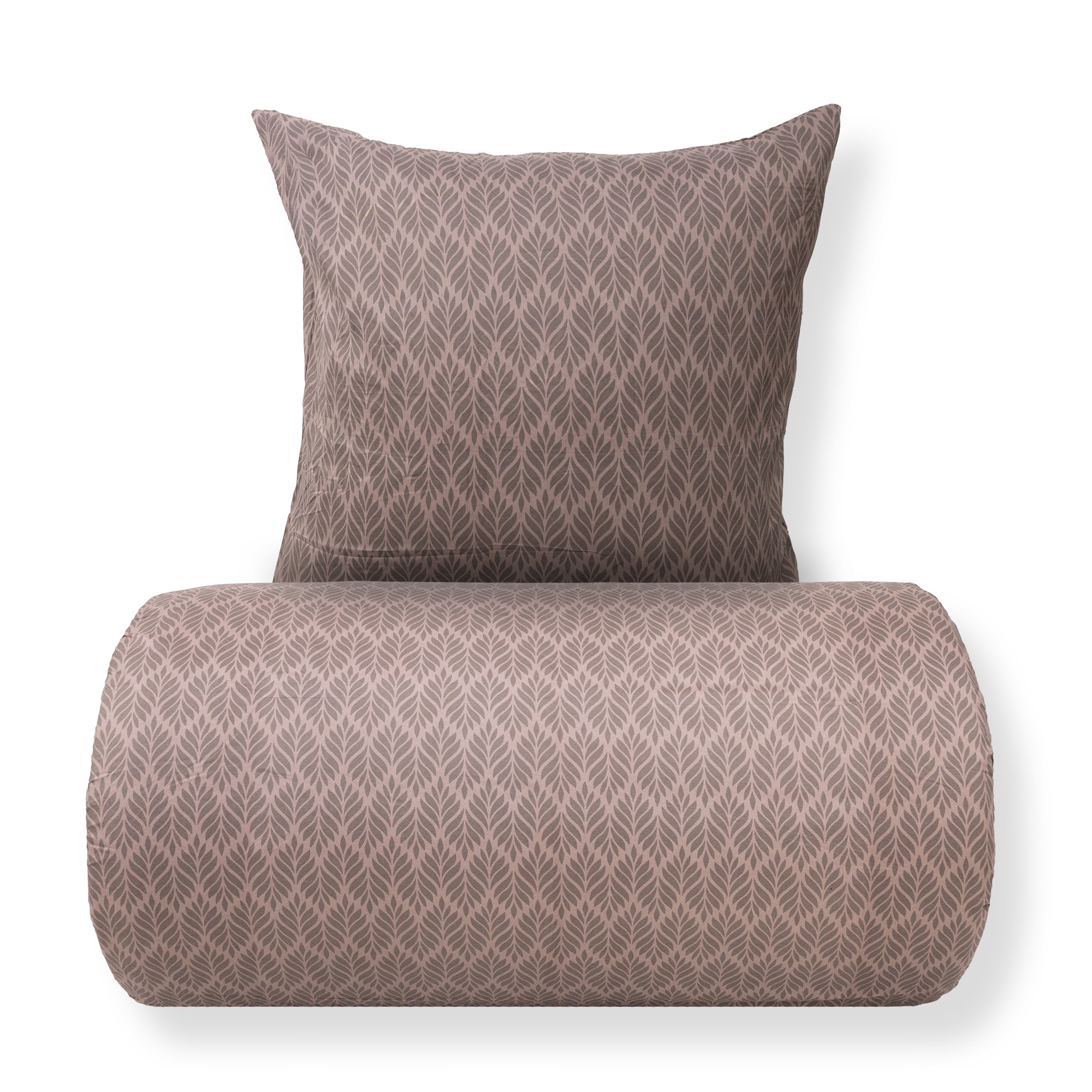 Både påslakan och örngott stängs med dragkedja, vilket säkerställer att täcket och kudden hålls på plats och gör det enkelt att byta sängkläder. Det bruna mönstret skapar ett lugnt och dekorativt uttryck som passar både moderna och klassiska sovrum.