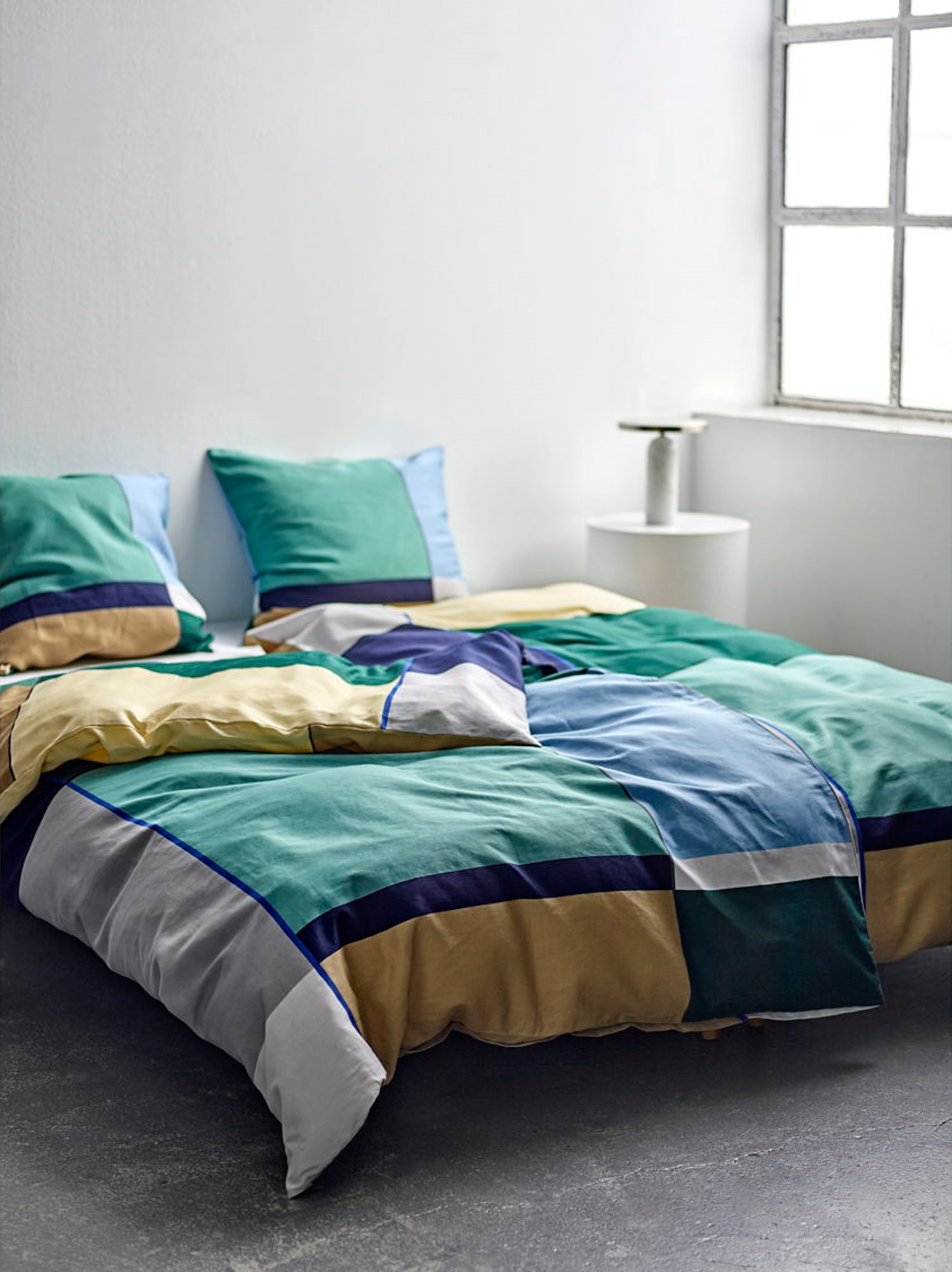 Den satinvävda kvaliteten gör sängkläderna både andningsbara och temperaturreglerande, så att du sover komfortabelt oavsett säsong. Det stilrena Colour Block-designen kombinerar färger och former på ett sätt som passar perfekt i det moderna hemmet.