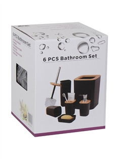 Framsidan »Inredning » Badrumstillbehör » Badrumsset Badrumstillbehör - 6 delar - Vitt - kraftig plast och bambu - Badrumsset Spara42% Borg Living 599,00349,00SEKSpara 250,- I lager Trustpilot Antal Lägg i varukorgen Se mer från: Borg Living Artikelnummer:PR827 Se vårt utbud av handduksset Se vårt utbud av förvaring för badrummet Har du frågor om produkten? Badrummet i 6 delarHygieniska och praktiska lösningarEnhetlig design som skapar lugn och sammanhang Typ: Badrumsset Material: Plast och Bambus Färg: Vitt Antal delar: 6 st. - Papperskorg - 3L - Tvåldispenser - Tvålfat - Toalettborste - 37 cm - Tandborstmugg - Vattenmugg Komplett badrumsset i 6 delar med toalettborste, tvåldispenser, tandborstmugg, tvålfat, förvaringsglas och förvaringsburk. Ett stilrent och matchande set som skapar ordning och sammanhang i hela badrummet. Materialen är lätta att rengöra och designade för daglig användning i våtrum. Perfekt för dig som önskar ett modernt och genomtänkt badrumsuttryck. Badrumsset med 6 delar Uppgradera hela badrummet på en gång med detta kompletta badrumsset i 6 delar. Setet innehåller allt du behöver för ett mer organiserat, stilfullt och funktionellt badrum: toalettborste, tvåldispenser, tandborstmugg, tvålfat, förvaringsglas och papperskorg i vitt med bambusdetaljer. Toalettborsten har en sluten och hygienisk design som döljer borsthålet och minskar lukt. Tvåldispensern säkerställer en jämn och kontrollerad dosering, medan tandborstmuggen håller borstar och tandkräm samlat och upphöjt från vattendroppar. Det praktiska tvålfatet ser till att fast tvål kan torka ordentligt så att den håller längre och inte lämnar rester på handfatet. Förvaringsglaset är idealiskt för bomullspinnar, bomullsrondeller eller småsaker. Alla delar är tillverkade i rengöringsvänliga material som tål fukt och daglig användning. Ytan är lätt att torka av och designen är skapad för att hålla sig fin – även i hem där badrummet används många gånger om dagen. Ett komplett set för dig som önskar funktion, estetik och sammanhang i hela badrummet. Hitta handdukar här. Tillbaka till Badrumsset