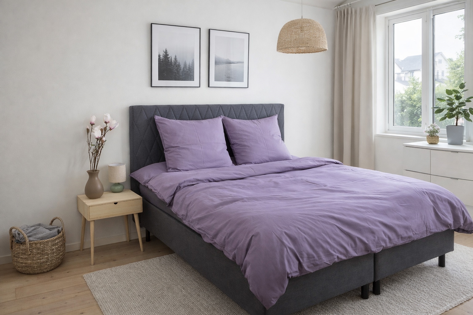 Framsidan »Sängkläder » Enkelt påslakanset » Extra långa sängkläder 140x220 cm Bambu sängkläder - 100% naturlig bambu - 140x220 cm - Ljuslila, satinvävd sängklädesset Spara52% Nordstrand Home 1.349,00649,00SEKSpara 700,- I lager Trustpilot Antal Lägg i varukorgen Se mer från: Nordstrand Home Artikelnummer:2304-2 Läs vår guide till sängkläder Se vårt stora utbud av lakan Se vårt stora urval av täcken 140x220 Har du frågor om produkten? 100 % naturlig bambuSvettabsorberande och andasAllergivänlig och antibakteriell Påslakan: 140x220 cm Kuddfodral: 1 st. á 60x63 cm Material: 100 % ren naturlig bambu Vävning: Satinväv Trådtal: 200TC - Mjuk och fin Färg: Ljuslila Design: Enfärgad Varumärke: Nordstrand Home Stängning: Påslakan med dragkedja, kuddfodral med överlapp Tvätt: 40° skonsam (Viktigt att använda Enzymfritt tvättmedel) Torktumling: Ja Tål strykning : Ja Certifiering: STANDARD 100 by OEKO-TEX® (15.HCN.61893 Hohenstein HTTI) Mjuka sängkläder i bambu När du har provat att sova med sängkläder i bambu vill du inte använda något annat. Sängsetet är tillverkat i 100 % ren naturlig bambu och är satinvävt utan användning av kemikalier Bambu sängkläder ger en perfekt kombination av komfort och lyx. Tillverkat av naturliga bambufibrer är dessa sängkläder otroligt mjuka och skonsamma mot huden, vilket ger dig en skön nattsömn. Dessutom är sängkläder i bambu kända för sin fantastiska hållbarhet, så du kan njuta av kvaliteten i många år framöver. En ytterligare fördel med bambusängkläder är att de är lätta att underhålla. Den tål maskintvätt och håller sig fin utan att bli sliten, som traditionella sängkläder ofta gör. Fördelar med bambu: Oöverträffad komfort: Bambufibrer är kända för sin mjukhet och bekvämlighet. Långsiktig hållbarhet: Ett slitstarkt material som håller i många år och garanterar en smart investering. Enkel skötsel: Lätt att tvätta i maskin och bibehåller sitt goda skick utan att slitas. Om du vill ha sängkläder som kombinerar hållbarhet, kvalitet och komfort är sängkläder i bambu det självklara valet. Köp matchande kuddfodral till dina extra kuddar här Med Nordstrand Home är du garanterad hemtextil i dansk design - i nordisk stil. Nordstrand Home lägger stor vikt vid känslan av välbefinnande i en vacker men samtidigt avkopplande miljö. Med Nordstrand Home behöver du inte kompromissa, du hittar alltid produkter i klassiska och moderiktiga färger. Nordstrand Home – så känner du dig hemma! Du hittar vårt stora sortiment av kvalitetslakan här Tillbaka till Extra långa sängkläder 140x220 cm
