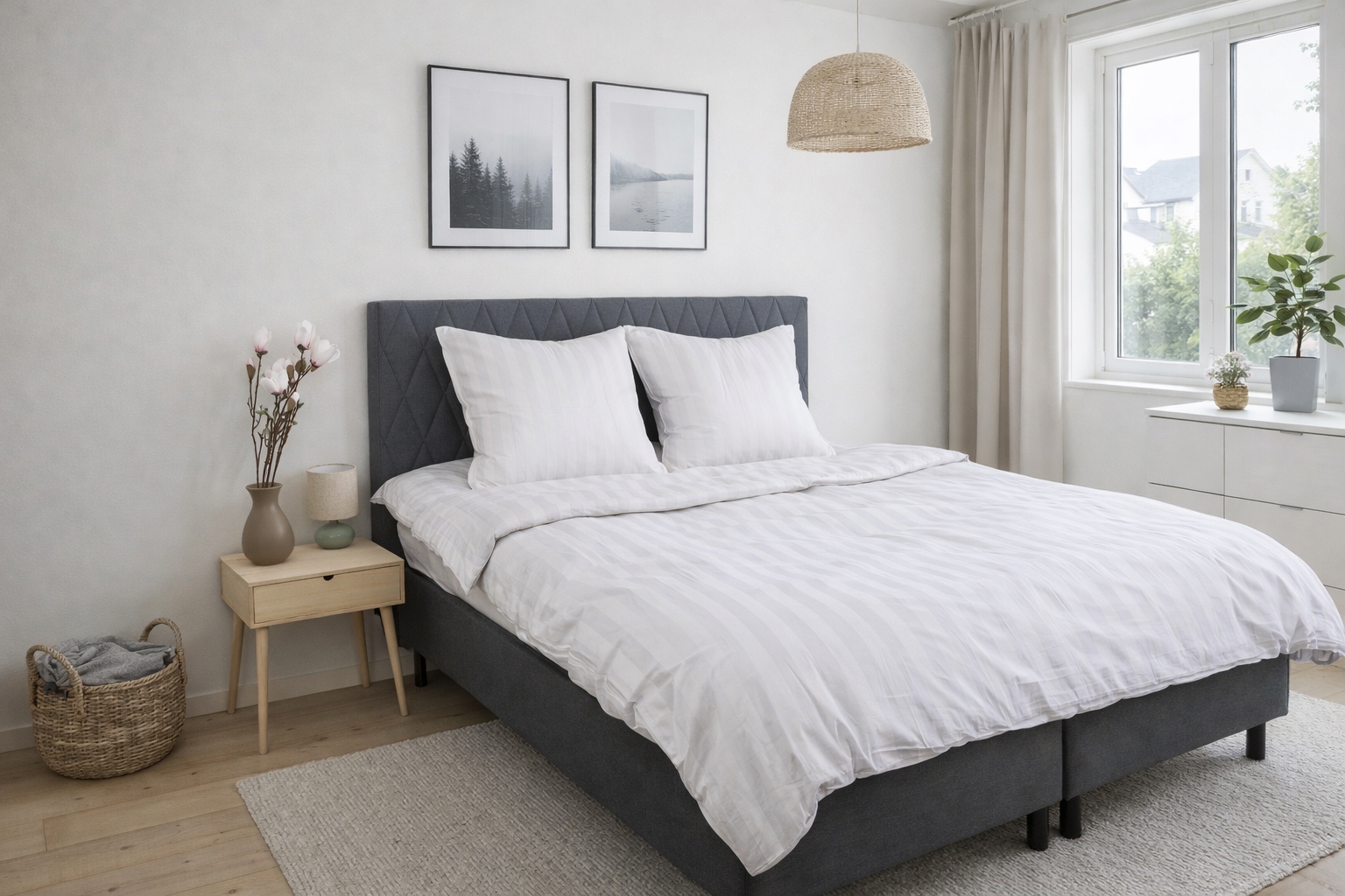 Skäm bort dig själv med bambusängkläder från Nordstrand Home – ett sängset med eleganta linjer och en mjuk känsla. Det jacquardvävda tyget med smala, fina ränder ger bäddsetet ett exklusivt uttryck, medan bambufibrerna ger en oslagbar mjukhet mot huden.