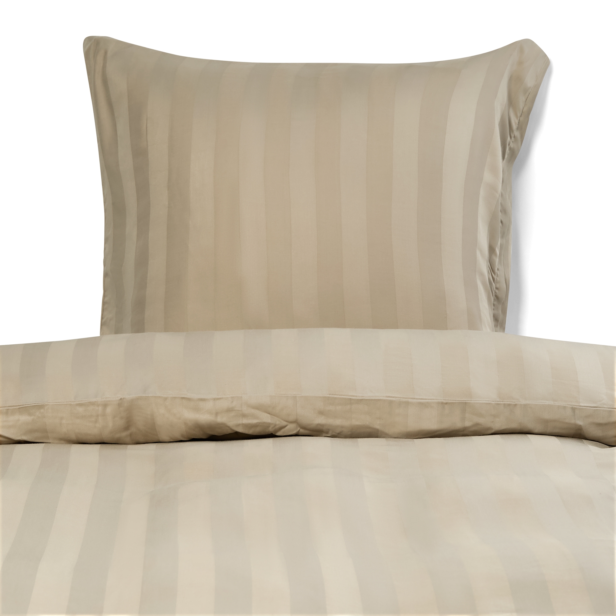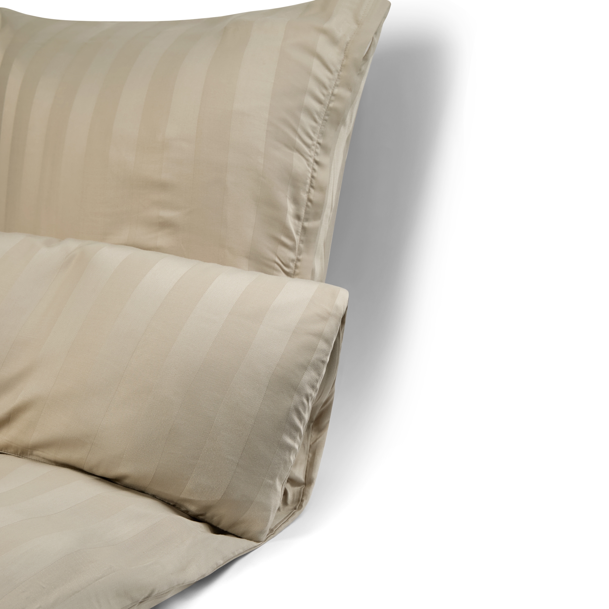 Bambu sängkläder - 140x220 cm - 100% naturligt bambu - Sandfärgad, jacquardvävt bäddset med ränder