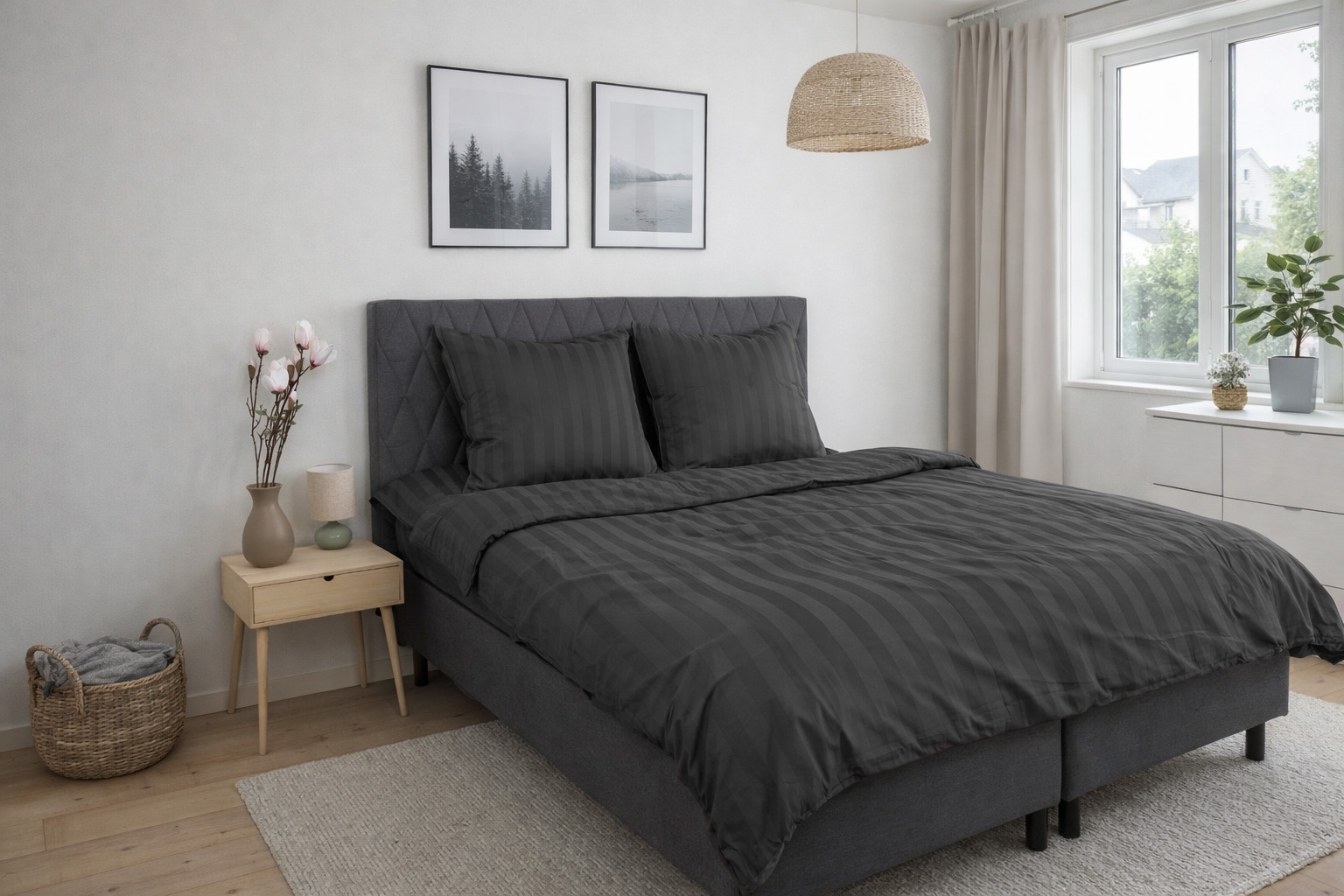 Skäm bort dig själv med bambusängkläder från Nordstrand Home – ett sängset med eleganta linjer och en mjuk känsla. Det jacquardvävda tyget med smala, fina ränder ger bäddsetet ett exklusivt uttryck, medan bambufibrerna ger en oslagbar mjukhet mot huden.