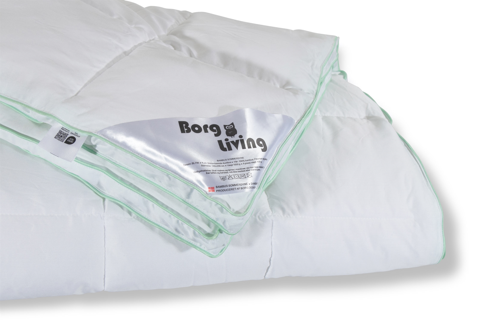 Framsidan »Täcken » Värmeklass » Sommartäcken Bambu sommartäcke 140x220 cm - sommartäcke med extra mjuk bambu och dunfiber - Borg Living Spara50% Borg Living 1.699,00849,00SEKSpara 850,- I lager Trustpilot Antal Lägg i varukorgen Se mer från: Borg Living Artikelnummer:BL790-2 Läs vår täckesguide Läs om underhåll av täcken och kuddar Se vårt stora utbud av kuddar Har du frågor om produkten? Det mjukaste täcket100% bambuAntibakteriellt Storlek: 140x220 cm - Enkeltäcke med extra längd Typ: Bambu sommartäcke Varumärke: Borg Living Fyllnadsvikt: 440 g Fyllning: 100 % silikoniserade dunfibrer Yttertyg: 100 % bambu Konstruktion: 7x11 kassettäcke - med 3 cm panelkant Tvätt: 40° (Viktigt att använda Enzymfritt tvättmedel) Torktumling: Ja Garanti: 2 år Levereras i förvaringspåse Certifiering: STANDARD 100 by OEKO-TEX® (12. HCN. 05085) Se alla våra kuddar här Sommartäcke i bambu från Borg Living, ett täcke med extra mjukhet och superkomfort. Bambutäcket håller dig skön och sval under de varma sommarnätterna. Täcket är tillverkat med ett härligt mjukt yttertyg av 100% bambu och extra mjuka fina silikoniserade dunfibrer. Om du saknar ett mjukt täcke med bra isolering, extra mjukhet och en unik tyngd, då är bambu sommartäcket det du letar efter. Så om du letar efter ett allergivänligt sommartäcke är det här något för dig. Se vårt stora utbud av sängkläder i 140x220 cm här Varför bambu? Bambu är ett av vår tids mest hållbara material. När bambu skördas används hela växten, från de inre fibrerna till det hårda skalet. För täcken och textilier används de mjuka fibrerna från kärnan. Dessa fibrer har unika egenskaper som överförs till produkterna som tillverkas. Med ett täcke i bambu kan du därför förvänta dig: Hög fukttransport och andningsförmåga Unik och lyxig mjukhet Extra snabbtorkande förmåga Antibakteriellt material Extra hög slitstyrka Perfekt balans mellan vikt och lätthet Lätt att underhålla Det danska varumärket Borg Living producerar exklusiva serier av täcken, kuddar och hemtextilier för ditt hem. Varumärket som grundades 2013 är känt för sin nytänkande inom kvalitet och design. Borg Livings fantastiska produkter bidrar till en optimal och behaglig nattsömn samt dekorerar ditt hem med moderna och snygga heminredningsdetaljer. Tillbaka till Sommartäcken