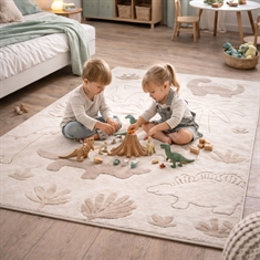Saknar du ett enkelt och lätt sätt att skapa helhet i ditt hem? Då kan denna fina matta vara det element som binder ihop inredningen. Skapa ett mysigt och fantasifullt univers i barnrummet med denna fina beige matta med dinosaurier från Eclipse Kids. Det fina dino-motivet i lugna naturfärger gör mattan till ett dekorativt och lekfullt inslag som barn kommer att älska. Mattan fungerar perfekt som samlingspunkt för lek. På grund av mattans material (PP och PES) är den robust och lämpad för daglig användning i barnrummet, där det lekas, myser och läses godnattsagor. Den mjuka dinosauriemattan är idealisk som lekmatta mitt i rummet, under ett litet bord eller som ett mjukt underlag vid sängen. Ett självklart val för dig som vill ha en praktisk och dekorativ barnmatta i beige nyanser som skapar värme och trygghet i inredningen. OBS: Mattan finns även rund. Se vårt stora utbud av olika barntextilier här Med Nordstrand Home är du garanterad heminredningstextilier i dansk design - i nordisk stil. Nordstrand Home lägger stor vikt vid känslan av välbefinnande i en vacker, men samtidigt avslappnad miljö. Med Nordstrand Home behöver du inte kompromissa; du hittar alltid produkter i klassiska och moderiktiga färger. Nordstrand Home – Så känner du dig som hemma!