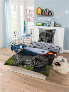 Framsidan »Sängkläder » Sängkläder för barn » Sängkläder för Barn 140x200 cm Barnsängkläder - 140x200 cm - Dinosauriesängkläder - Överkast med vändbart design - Farlig t-rex och vulkan - Påslakanset i 100% bomull Spara30% Licens 499,00349,00SEKSpara 150,- I lager Trustpilot Antal Lägg i varukorgen Se mer från: Licens Artikelnummer:9903-1 Läs vår sängklädsguide Se vårt stora utbud av lakan Se vårt stora utbud av sommartäcken 140x200 Har du frågor om produkten? Favoritdino med vändbart designMjukt och härligt bomullOEKO-TEX® certifierad Påslakan: 140x200 cm Kuddfodral: 60x63 cm Material: 100% mjuk bomull Färg: Flerfärgad Motiv: Vändbart design - framsida med Tyrannosaurus rex, baksida med all-over tryck av dino fotspår Stängning: Påslakan med knappar och kuddfodral med överlapp Tvätt: 60° Torktumling: Ja Tål strykning: Ja Certifiering: STANDARD 100 by OEKO-TEX® (17.HPK.23879). Din garanti för att produkten är fri från skadliga kemikalier. Den farliga t-rex framför vulkanen i utbrott ger sängkläderna ett snyggt och actionfyllt utseende. Ett häftigt barnsängset för alla dinoälskare. Producerat i 100% bomull för god sovkomfort och andningsförmåga. Ett slitstarkt set sängkläder för barn som gör sovupplevelsen mer inbjudande. Mjuka och härliga sängkläder med smart design som gör sängkläderna vändbara. På ena sidan av sängkläderna finns ett motiv av en vrålande dinosaurie (tyrannosaurus rex) som står framför en vulkan i utbrott. Vänder du på påslakansetet får du en sida med avtryck av dinosauriefötter. Sängkläderna är producerade i 100% mjuk bomull som gör setet slitstarkt och med hög andningsförmåga. Den rena bomullskvaliteten ger ett härligt och mjukt sängset som bidrar till en god sovkomfort för barnet. Bomullssängkläder kan tvättas i 60° i tvättmaskin, vilket också hjälper till att hålla en hög hygiennivå. Sängkläderna är dessutom tillverkade med OEKO-TEX certifiering, vilket är din garanti för att setet är fritt från skadliga kemikalier. Utforska favoriter och mycket mer i vårt stora utbud av tillbehör till barnrummet För barnet bör sängen vara en trygg plats och alla element ska tillsammans skapa mjuka och härliga omgivningar för barnet att finna ro i. Använd gärna barnets intressen för att skapa ett tryggt sovrum för barnet. Hos oss kan du hitta ett stort utbud av tillbehör till sängen och barnrummet, från övermadrasslakan till sommartäcken, kuddar, sängkläder och mycket mer, och massor av produkter med alla barnens favoriter. Allt detta är element som kan bidra till att skapa rätt sovmiljö och rum för ditt barn. Här kan du hitta fina och mjuka kvalitetslakan Tillbaka till Sängkläder för Barn 140x200 cm