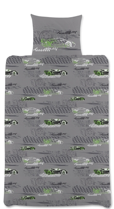 Framsidan »Sängkläder » Sängkläder för barn » Sängkläder för Barn 140x200 cm Barnsängkläder med racerbilar 140x200 cm - Vändbart påslakanset - 100% bomullssängkläder Spara40% Licens 499,00299,00SEKSpara 200,- I lager Trustpilot Antal Lägg i varukorgen Se mer från: Licens Artikelnummer:1833-1 Läs vår sängklädsguide Se vårt stora utbud av lakan Se vårt stora utbud av täcken 140x200 Har du frågor om produkten? Populärt designMjukt och härligt bomullOEKO-TEX® certifierat Påslakan: 140x200 cm Kuddfodral: 60x63 cm Material: 100% mjuk bomull Färg: Grå och grön Motiv: Racerbilar Design: Vändbar - framsida med racerbilar, baksida med all-over print Stängning: Påslakan med knappar, kuddfodral med överlapp Tvätt: 60° Torktumling: Ja Tål strykning: Ja Certifiering: STANDARD 100 by OEKO-TEX® (11-67789 Shirley). Din garanti för att produkten är fri från skadliga kemikalier. Mjuka sängkläder med motiv av racerbilar. Det fina sängsetet har två sidor att välja mellan tack vare smart vändbart design. Det mjuka sängsetet producerat i 100% bomull är både andningsbart och absorberande, och ger god sovkomfort. Ett slitstarkt bomulls barnsängset som gör barnrummet lite mer spännande. Rusa in i drömlandet med detta coola sängset med racerbilar. Sängsetet är vändbart med två olika designer på fram- och baksida. Framsidan har ett stort tryck med två racerbilar, medan baksidan har ett fint all-over print med små racerbilar. Det är alltid en bra idé att använda barnets intressen för att skapa en tryggare och mer spännande sovmiljö för barnet. Sängsetet är tillverkat i 100% mjuk bomull som gör setet slitstarkt och med hög andningsförmåga. Den rena bomullskvaliteten ger ett härligt och mjukt sängset som bidrar till en god sovkomfort för barnet. Bomullssängkläder kan tvättas i 60° i tvättmaskin, vilket också hjälper till att hålla en hög hygiennivå. Sängkläderna är dessutom OEKO-TEX certifierade, vilket är din garanti för att setet är fritt från skadliga kemikalier. Utforska favoriter och mycket mer i vårt stora sortiment av tillbehör till barnuniversumet För barnet bör sängen vara en trygg plats och alla element ska tillsammans skapa mjuka och härliga omgivningar där barnet kan finna ro. Använd gärna barnets intressen för att skapa ett tryggt sovrum för barnet. Hos oss hittar du ett stort utbud av tillbehör till sängen och barnrummet, från övermadrasslakan till täcken, kuddar, sängkläder och mycket mer, samt massor av produkter med alla barnens favoriter. Alla dessa element kan bidra till att skapa rätt sovmiljö och rum för ditt barn. Här hittar du fina och mjuka kvalitetslakan Tillbaka till Sängkläder för Barn 140x200 cm