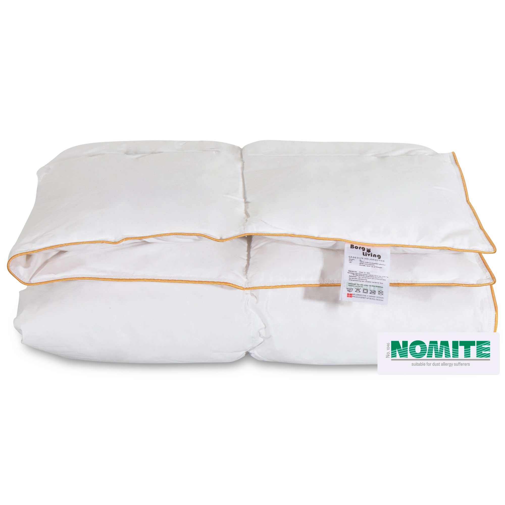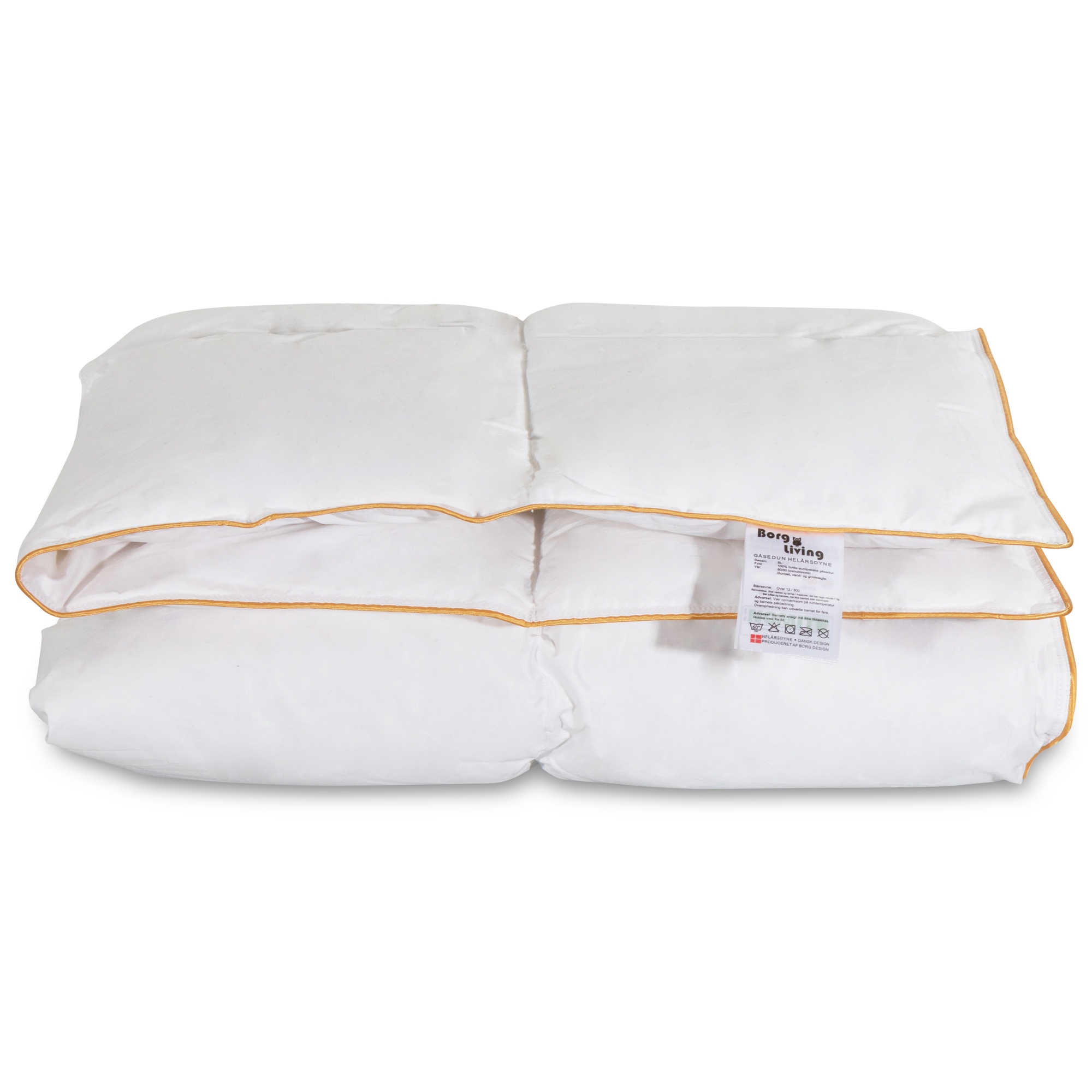 Framsidan »Inredning » Barnrummet » Juniordyna 100x140 cm Barntäcke med gåsdun - 100x140 cm - Bärighet över 12 - Helårs barntäcke - Borg Living barntäcke 100% gåsdun Spara40% Borg Living 1.999,001.199,00SEKSpara 800,- Fri frakt på denna varaI lager Trustpilot Antal Lägg i varukorgen Se mer från: Borg Living Artikelnummer:BL559 Läs vår täckesguide Läs om underhåll av täcken och kuddar Se vårt stora utbud av kuddar Har du frågor om produkten? AllergivänligtFri från husdammskvalsterVitt och rent europeiskt gåsdun Storlek: 100x140 cm barntäcke Typ: Året runt-täcke - helårsvarmt Fyllning: 100 % vita och rena europeiska gåsdun Varumärke: Borg Living Bärighet: Över 12 (gammal mätmetod) Bärighet: 800 (ny mätmetod) Fyllnadsvikt: 280 g Yttertyg: 100 % bomullssatin 80/80 (extra fint och mjukt) Konstruktion: 4x5 kassettäcke med guldkant Tvätt: 60° (viktigt att använda enzymfritt tvättmedel) Torktumling: Måste torktumlas med torkbollar Garanti: 5 år Levereras i bärväska Certifiering: Down pass - högsta djuretiska villkor Certifiering: NOMITE - fri från husdammskvalster Certifiering: DOWNAFRESH - 100 % rent dun Certifiering: STANDARD 100 by OEKO-TEX® (BEHO 062282) Åretrunt-gåsduntäcke Borg Livings gåsduntäcke är ett helårstäcke för barn med en kombination av komfort, kvalitet och hållbarhet. Täcket är fyllt med 100 % vita mjuka europeiska gåsdun som ser till att hålla en behaglig temperatur året runt. Gåsdunen i täcket kommer från europeiska gäss och är kända för sin höga kvalitet och hållbarhet. Gåsdun har en utmärkt isoleringsförmåga som gör att täcket håller ditt barn varmt på vintern och svalt på sommaren. Täcket har en bärighet på över 12 (gammalt mätsystem) eller Cuin 800 enligt det nya mätsystemet. Det är idealiskt för ditt barn eftersom det är lätt och faller mjukt runt kroppen och ger en jämn temperatur. Se huvudkuddar för barn här Kassetter Täcket är sytt i 4x5 kassetter med invändiga kanalväggar som gör att dunen fördelas jämnt i täcket utan att skapa köldbryggor. Yttertyget är av 100 % mjuk och fin bomullssatin 80/80, som är så tätvävd att husdammskvalster inte kan tränga igenom. Se vårt utbud av sängkläder för barn här Det danska varumärket Borg Living tillverkar exklusiva serier av täcken, kuddar och hemtextilier för ditt hem. Varumärket, som grundades 2013, är känt för sin innovation inom kvalitet och design. Borg Livings fantastiska produkter bidrar till en optimal och behaglig nattsömn och pryder ditt hem med moderna och snygga heminredningsdetaljer. Tillbaka till Juniordyna 100x140 cm