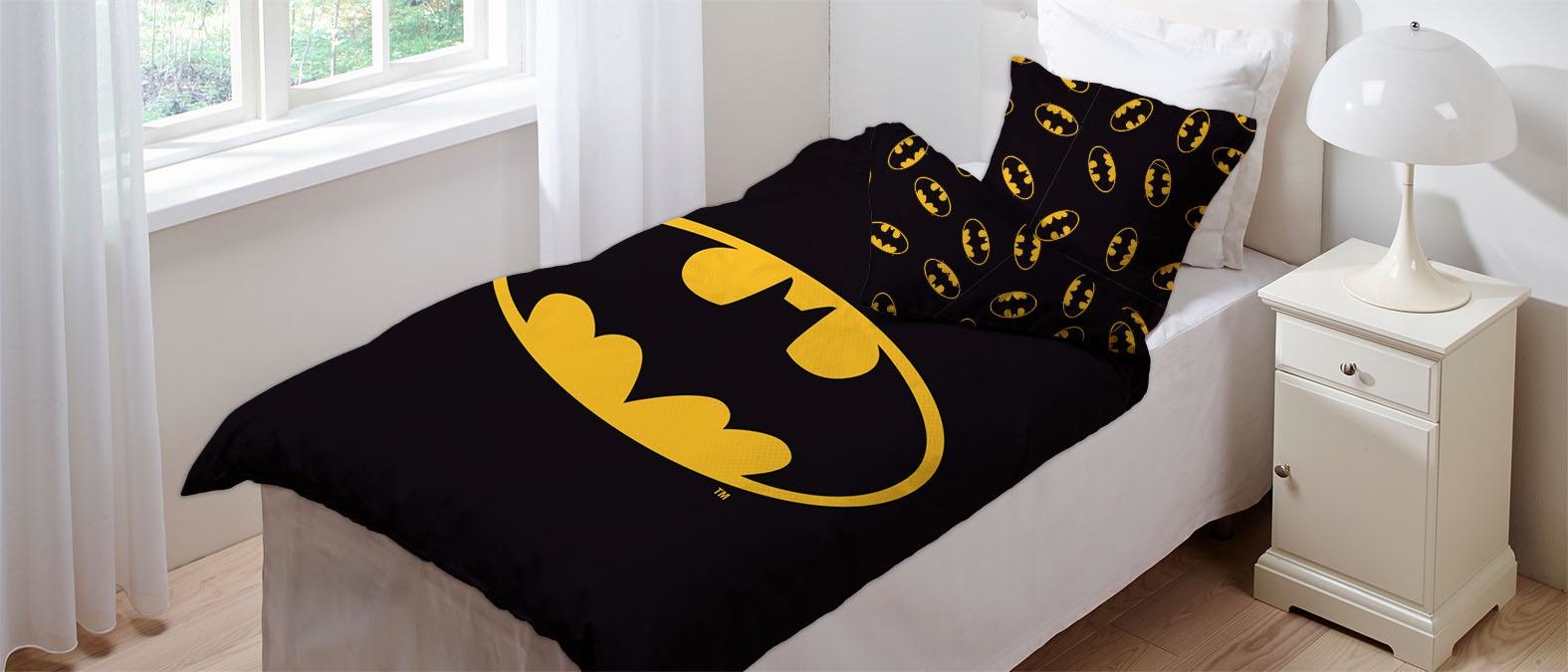 Framsidan »Sängkläder » Sängkläder för barn » Sängkläder för Barn 140x200 cm Batman sengetøy av flanell - 140x200 cm - Stort Batman-logo - Vendbart dynetrekk - 100% bomulls sengesett Spara33% Licens 499,00335,00SEKSpara 164,- I lager Trustpilot Antal Lägg i varukorgen Se mer från: Licens Artikelnummer:2151-1 Les vår sengetøyguiden Se vårt store utvalg av overmadrasslaken Se vårt store utvalg av dyner 140x200 Har du frågor om produkten? Mykt og deilig bomullPustende og slitesterktOEKO-TEX® sertifisert Dynetrekk: 140x200 cm Pudebetræk: 60x63 cm Materiale: 100% myk bomull Farge: Svart og gul Motiv: Vendbart design - forside med Batman-logo, bakside med all-over print av logo Lukning: Dyne med knapper og pudebetræk med overlapp Vask: 60° Tørketrommel: Ja Tåler stryking: Ja sertifisering: STANDARD 100 by OEKO-TEX®(1976-302). Din garanti for at produktet er fritt for helseskadelig kjemi. Mykt sengesett i 100% bomull, med et kult motiv av barnas helt Batman. Produsert med lette og pustende bomullsfibre gir sengesettet en følelse av mykhet som gjør at dynen faller naturlig rundt barnet ditt. Balansen i naturlig komfort fra det myke materialet og det kule designet gjør dette settet til en sikker favoritt hos barnet ditt. Batman sengetøy av flanell - Et svart, kult sengesett med stort Batman-emblem midt på dynetrekket. Sengesettet er vendbart og har to flotte sider som barnet kan velge mellom. På motsatt side er det et kult all-over print av Batmans logo. Kjenner du noen som er vill etter den fantastiske superhelten? Da vil dette sengesettet være en hit! Sengesettet er produsert i 100% myk bomull som gjør settet slitesterkt og med høy pusteevne. Den rene bomullskvaliteten gir et lekkert og mykt sengesett som bidrar til å fremme sovekomfort for barnet. Bomullssengetøy kan vaskes ved 60° i vaskemaskin, noe som også bidrar til å opprettholde et høyt hygienisk nivå. Sengetøyet er i tillegg fremstilt med OEKO-TEX-sertifisering, som er din garanti for at settet er fritt for skadelig kjemi. Gå på utkikk etter favorittene og mye mer i vårt store utvalg av tilbehør til barnerommet For barnet bør sengen være et trygt sted og alle elementene skal sammen skape myke og deilige omgivelser for barnet å finne ro i. Bruk derfor gjerne barnets interesser for å skape et trygt soverom for barnet. Hos oss kan du finne et stort utvalg av tilbehør til sengen og barnerommet, fra overmadrasslaken til dyner, puter, sengetøy og mye mer, og masse produkter med alle barnas favoritter på. Alt sammen elementer som kan bidra til å skape det rette sovemiljøet og rommet for barnet ditt. Her kan du finne deilige og myke kvalitets overmadrasslaken Tillbaka till Sängkläder för Barn 140x200 cm
