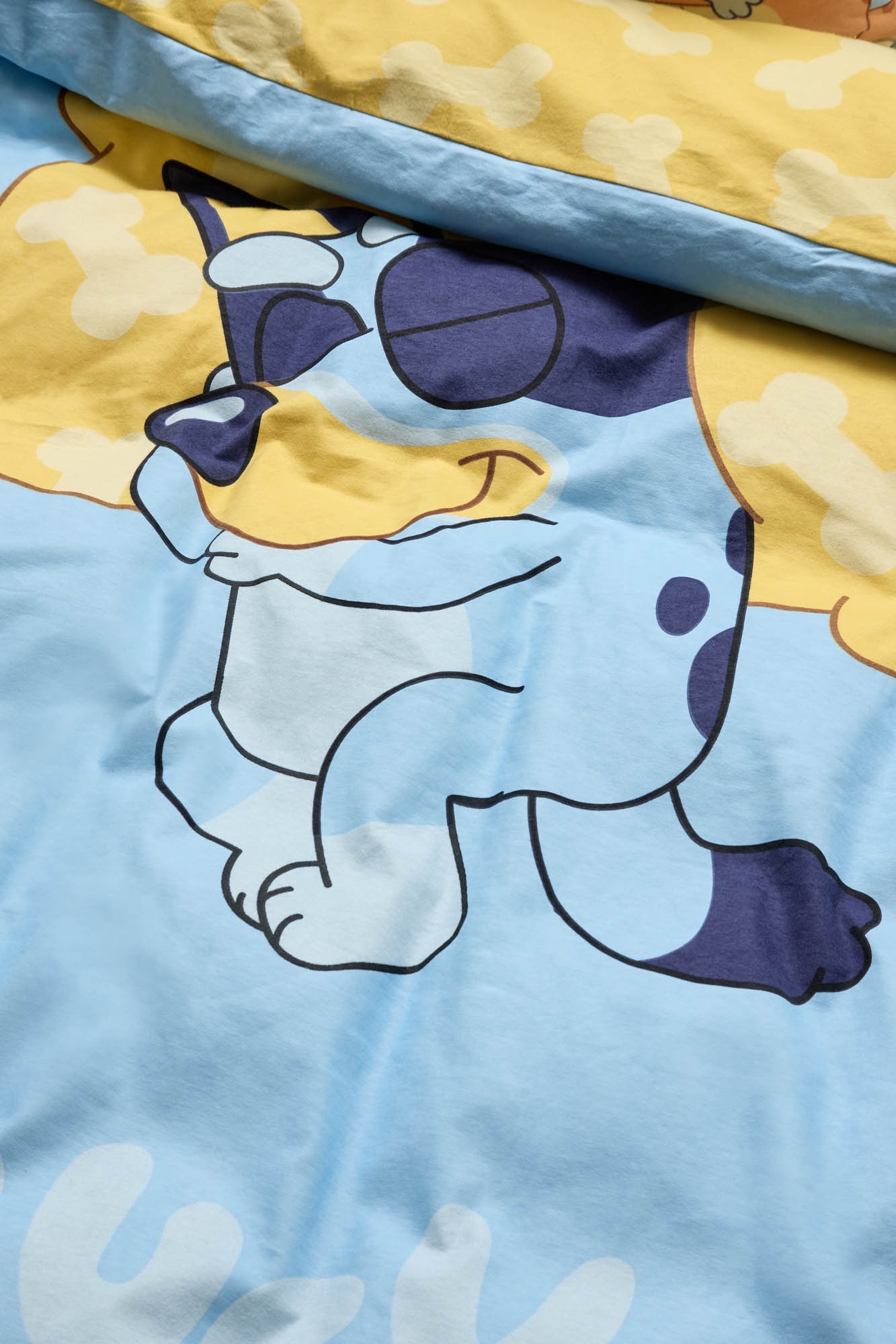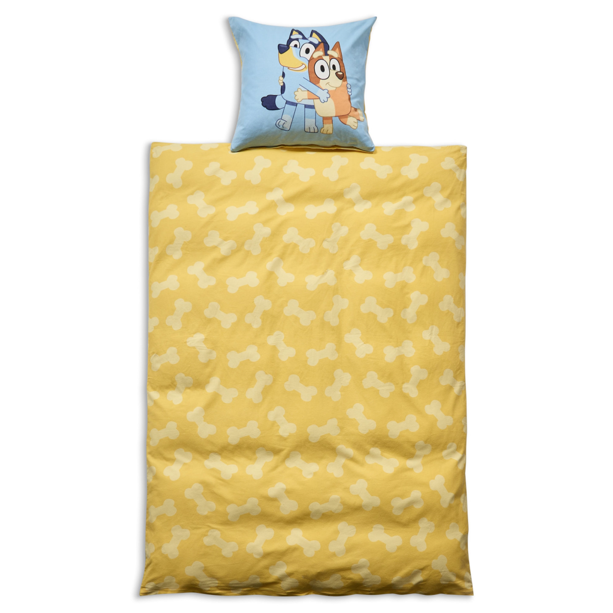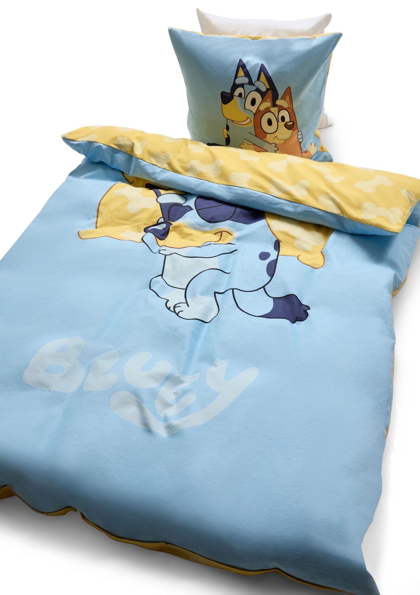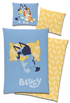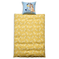 Framsidan »Sängkläder » Sängkläder för barn » Sängkläder för Barn 140x200 cm Bluey sengetøy av flanell mykt og deilig 100% bomullsflanell - Sovende Bluey - 140x200cm 2 i 1 design sengesett Spara43% Licens 699,00399,00SEKSpara 300,- I lager Trustpilot Antal Lägg i varukorgen Se mer från: Licens Artikelnummer:14821-1 Les vår sengetøyguide Se vårt store utvalg av overmadrasslaken Se vårt store utvalg av dyner 140x200 Har du frågor om produkten? Myk og fluffy overflate Allergivennlig OEKO-TEX® sertifisert Dynetrekk: 140x200 cm Pudetrekk: 60x63 cm Materiale: 100% bomullsflanell Farge: Blå og gul Motiv: Bluey Design: Vendbar - Forside med Bluey, bakside med all-over print av kjøttbein Lukking: Dyne med knapper, pudetrekk med overlapp Vask: 40° Tørketrommel: Ja Tåler stryking: Ja Sertifisering: STANDARD 100 by OEKO-TEX® (ZHHO 050352 TESTEX). Din garanti for at produktet er fritt for helseskadelig kjemi. Sengetøy med et fint motiv av Bluey som sover. Det myke og fluffy sengesettet produsert i 100% bomullsflanell er både pustende og behagelig å sove i. Et slitesterkt bomulls barnesengesett som gjør barnerommet litt mer spennende. Sengesett med den fine og nysgjerrige Bluey. Bluey er kjent fra TV-serien med samme navn og er en energisk og nysgjerrig valp som sammen med søsteren Bingo forvandler hverdagen til et ekte eventyr. Sengesettet er vendbart, med et søtt design av Bluey som sover på forsiden og et all-over print av kjøttbein på baksiden. Dette barnesengetøyet med en av barnets favoritter vil gjøre barnerommet og sengen mer innbydende. Det er alltid en god idé å bruke barnets interesser for å skape et tryggere og mer spennende sovemiljø for barnet. Sengetøy av flanell er laget av en spesiell 100% bomullsflanell som kjennetegnes av sin myke, lett oppkradsede og fluffy overflate hvor bomullsfibrene er børstet på overflaten for å skape en ekstra myk og fluffy overflate Den børstede og oppkradsede overflaten gir flanell sengetøyet sin karakteristiske mykhet og varme, noe som gjør det ideelt for å skape en lun og deilig søvn, spesielt på kjølige netter. Sengetøy av flanell er pustende og behagelig å sove i og er populært på grunn av sin evne til å holde på varmen. Sengetøyet er i tillegg produsert med OEKO-TEX sertifisering, som er din garanti for at settet er fritt for skadelig kjemi. Gå på jakt etter favorittene og mye mer i vårt store utvalg av tilbehør til barneverdenen For barnet bør sengen være et trygt sted og alle elementene skal sammen skape myke og deilige omgivelser for barnet å finne ro i. Bruk derfor gjerne barnets interesser for å skape et trygt soverom for barnet. Hos oss kan du finne et stort utvalg av tilbehør til sengen og barnerommet, alt fra overmadrasslaken til dyner, puter, sengetøy og mye mer, og masse produkter med alle barnas favoritter på. Alt sammen elementer som kan bidra til å skape det rette sovemiljøet og rommet for ditt barn. Her kan du finne deilige og myke kvalitets overmadrasslaken Tillbaka till Sängkläder för Barn 140x200 cm