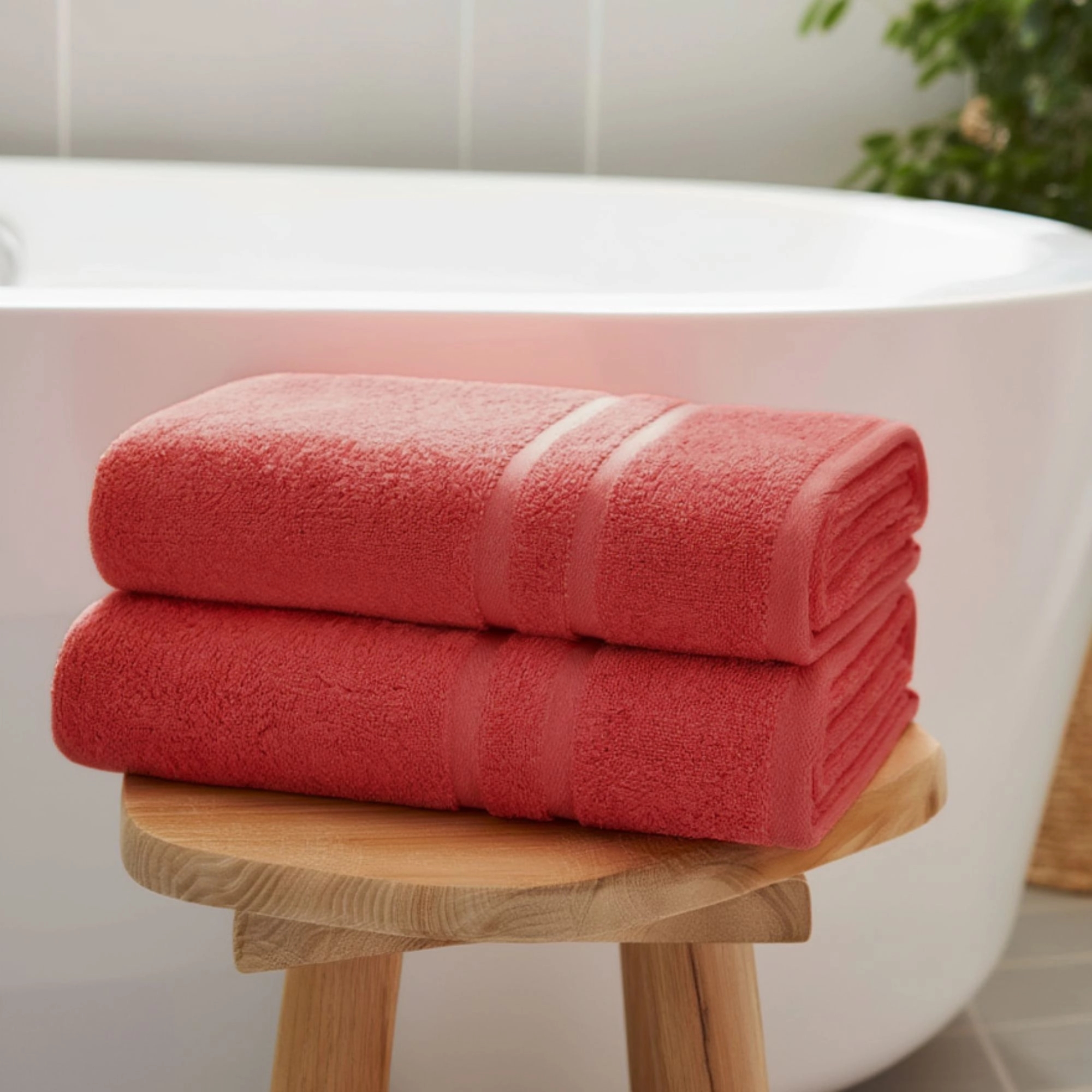 Korallfärgad bomullsgästhandduk 50x90 cm - Från IN Style