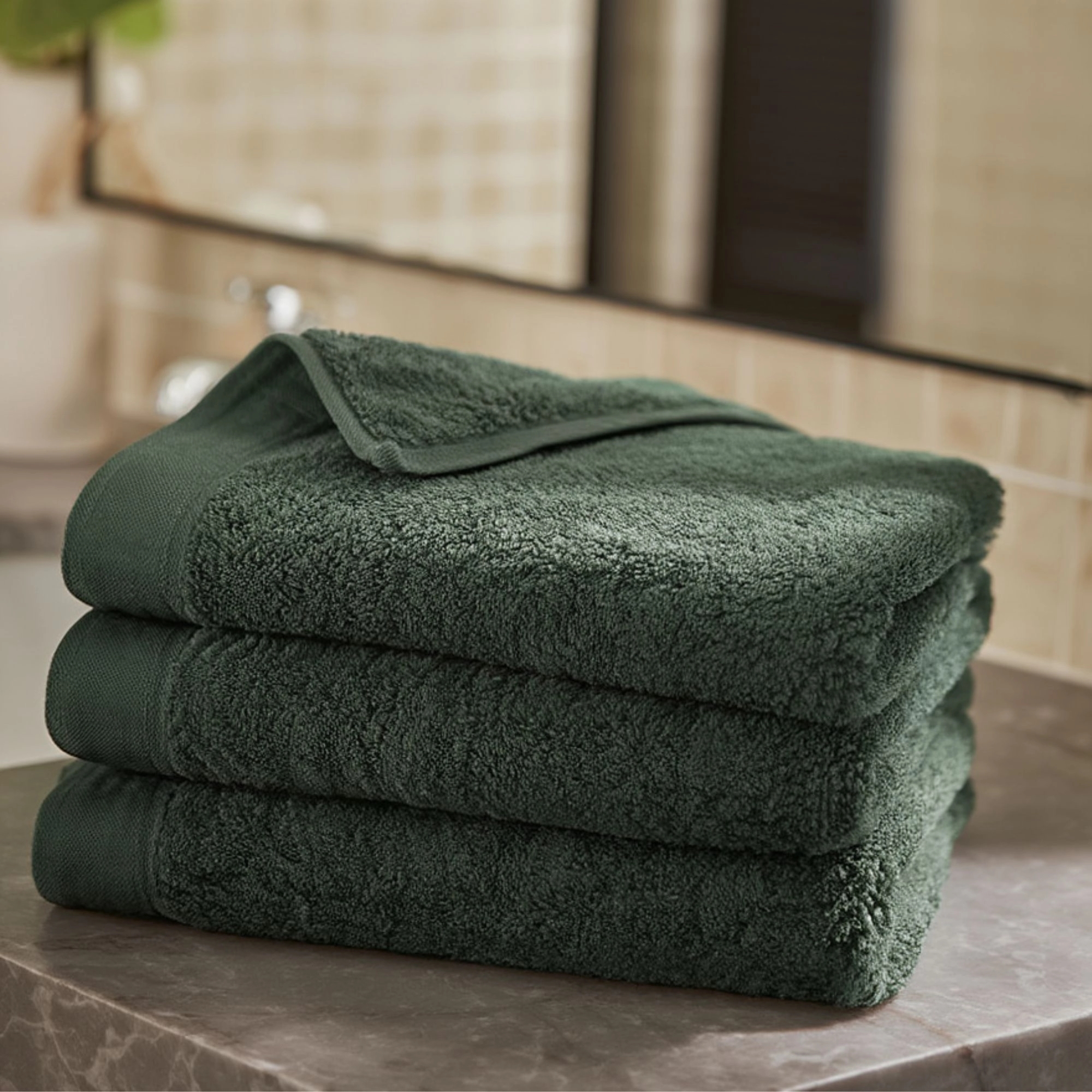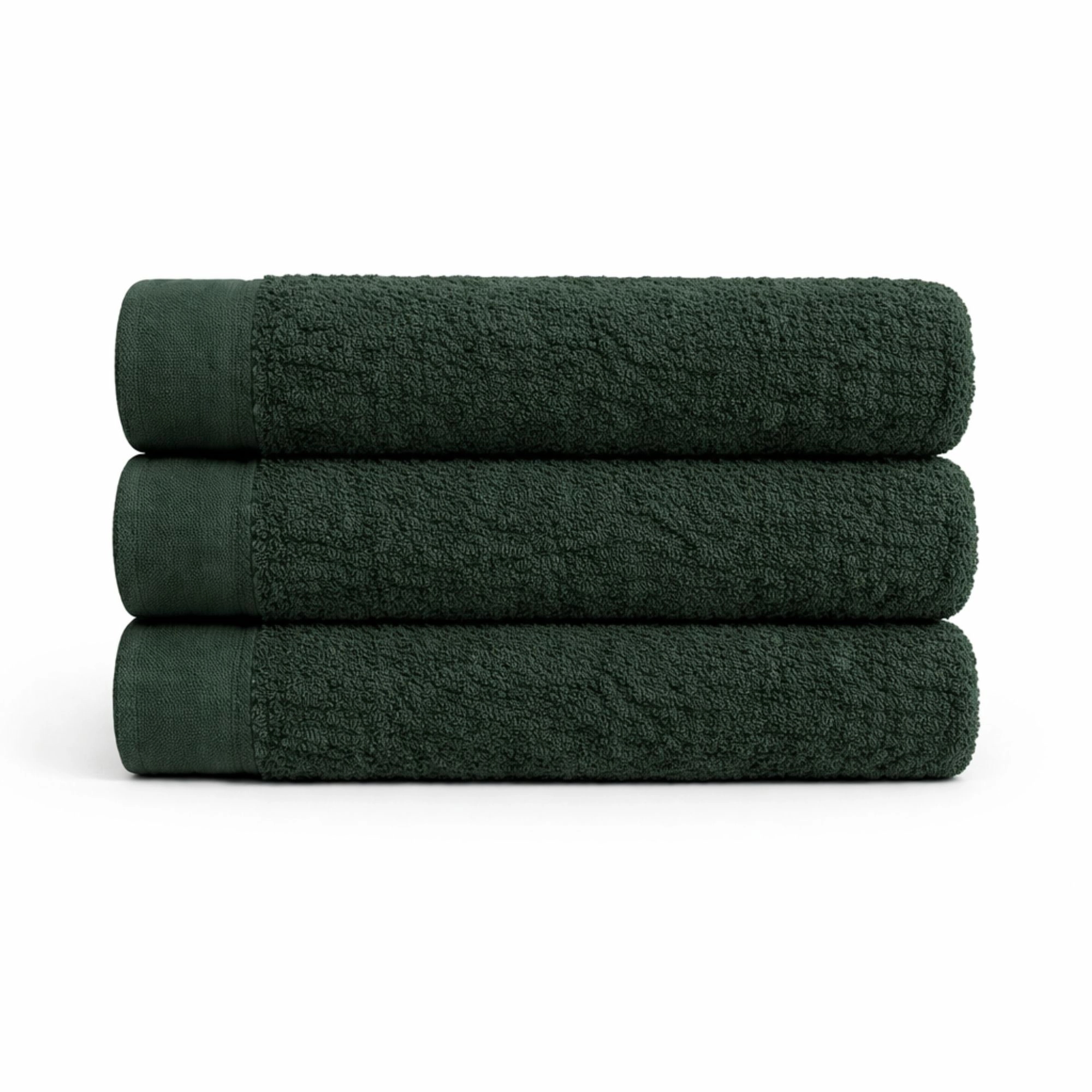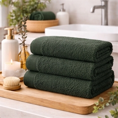 Skäm bort dig själv med en mjuk och inbjudande handduk från danska By Borg i en mörkgrön nyans som tillför värme och stil till ditt badrum. Handduken är tillverkad i 100% bomull och ger en behaglig, mjuk känsla mot huden - perfekt efter både bad och handtvätt. Den fylliga kvaliteten säkerställer hög absorptionsförmåga så att du snabbt blir torr. Samtidigt har handduken en bred, dekorativ bård som ger ett exklusivt och stilfullt uttryck, vilket lyfter handduken till en ny nivå. Den enkla designen gör den lätt att kombinera med resten av din inredning, medan de praktiska upphängningsbanden ser till att handduken alltid är nära till hands och lätt kan hängas på tork.