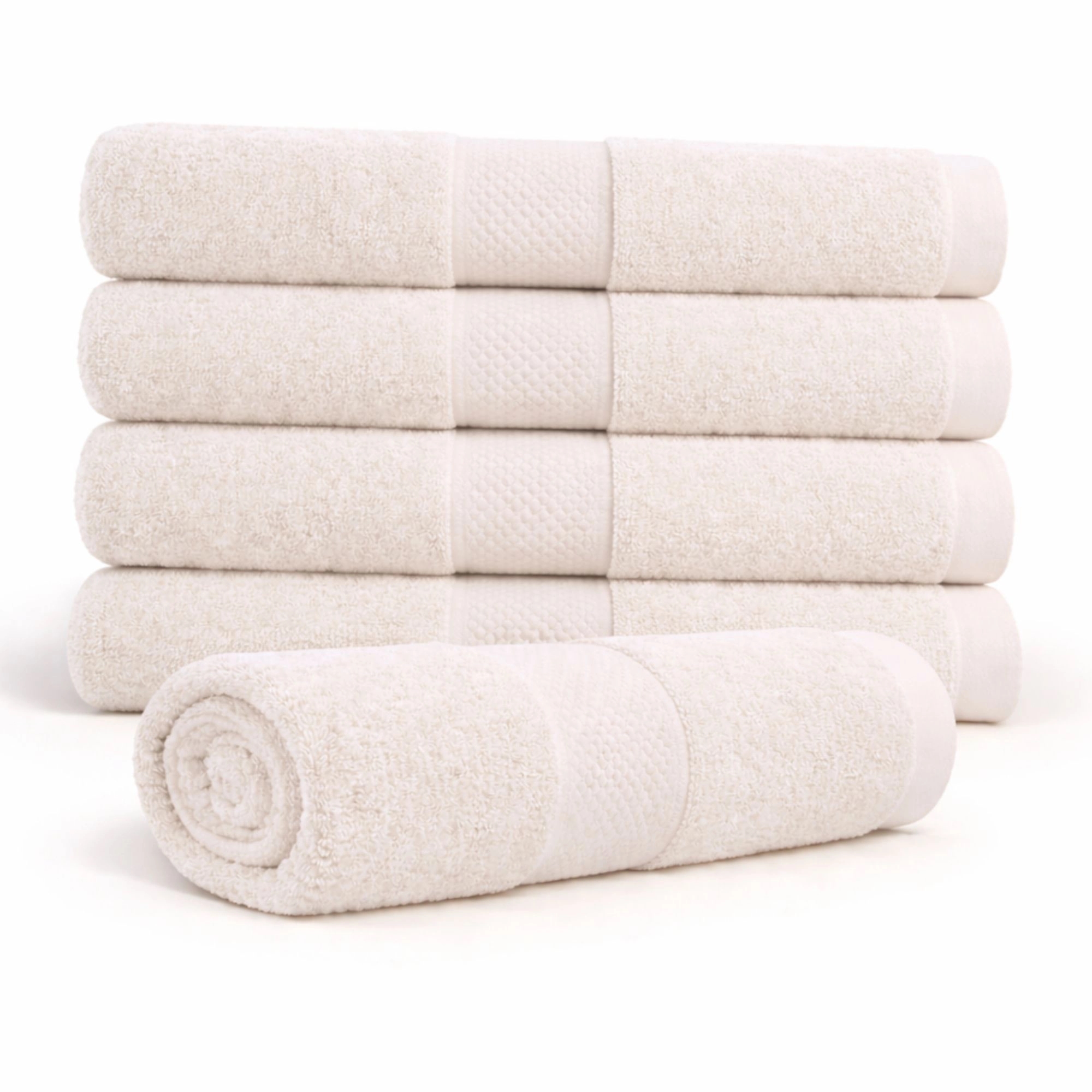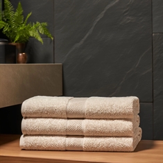 Bomull är ett naturligt material som är känt för sin mjukhet, hållbarhet och goda uppsugningsförmåga. Den täta kvaliteten på 450 g/m² ger handdukarna en lyxig känsla och säkerställer samtidigt god slitstyrka, så de kan användas om och om igen i vardagen.
