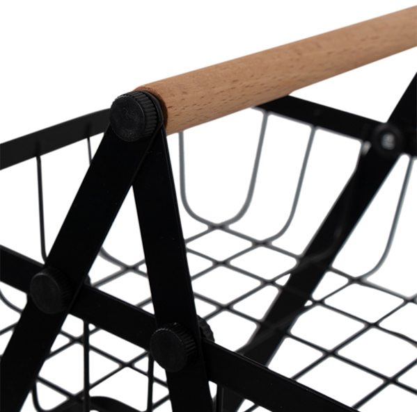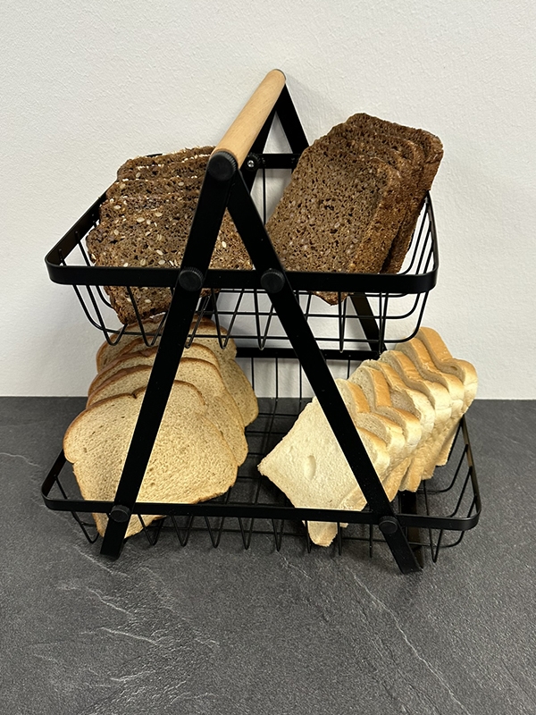 Framsidan »Inredning » Till bordet » Kök Brödkorg - Svart trådkorg med trähandtag - 31x20x31 cm - Trendig förvaring för hemmet Spara43% Home-tex 349,00199,00SEKSpara 150,- I lager Trustpilot Antal Lägg i varukorgen Se mer från: Home-tex Artikelnummer:PR794 Har du frågor om produkten? Elegant trådkorgMått: 31x20x31 cmBärhandtag i trä Material: Metall och trä Mått: 31x20x31 cm Färg: Svart Modern förvaringDenna eleganta trådkorg är både ett stilrent och funktionellt val för ditt hem. Med två våningar och ett gediget trähandtag är korgen praktisk och lätt att flytta runt. Den rymmer allt från frukt och bröd i kök till trasor och tvålar i badrummet.Denna trådkorg är designad med fokus på detaljer, och den svarta färgen ger en modern och tidlös touch till alla typer av inredning.Praktiska materialMetall är ett robust och hållbart material, perfekt för förvaring. Det är lätt att rengöra och underhålla samt ger ett modernt och industriellt utseende. Dessutom är metall ett mycket flexibelt material som kan formas till många olika former och utföranden. Trähandtaget är inte bara en estetisk detalj, utan också en praktisk lösning. Det gör det enkelt att flytta runt korgen, även när den är full. Trä är ett varmt och naturligt material som ger en mysig och hemtrevlig atmosfär till ditt hem. Tillbaka till Kök