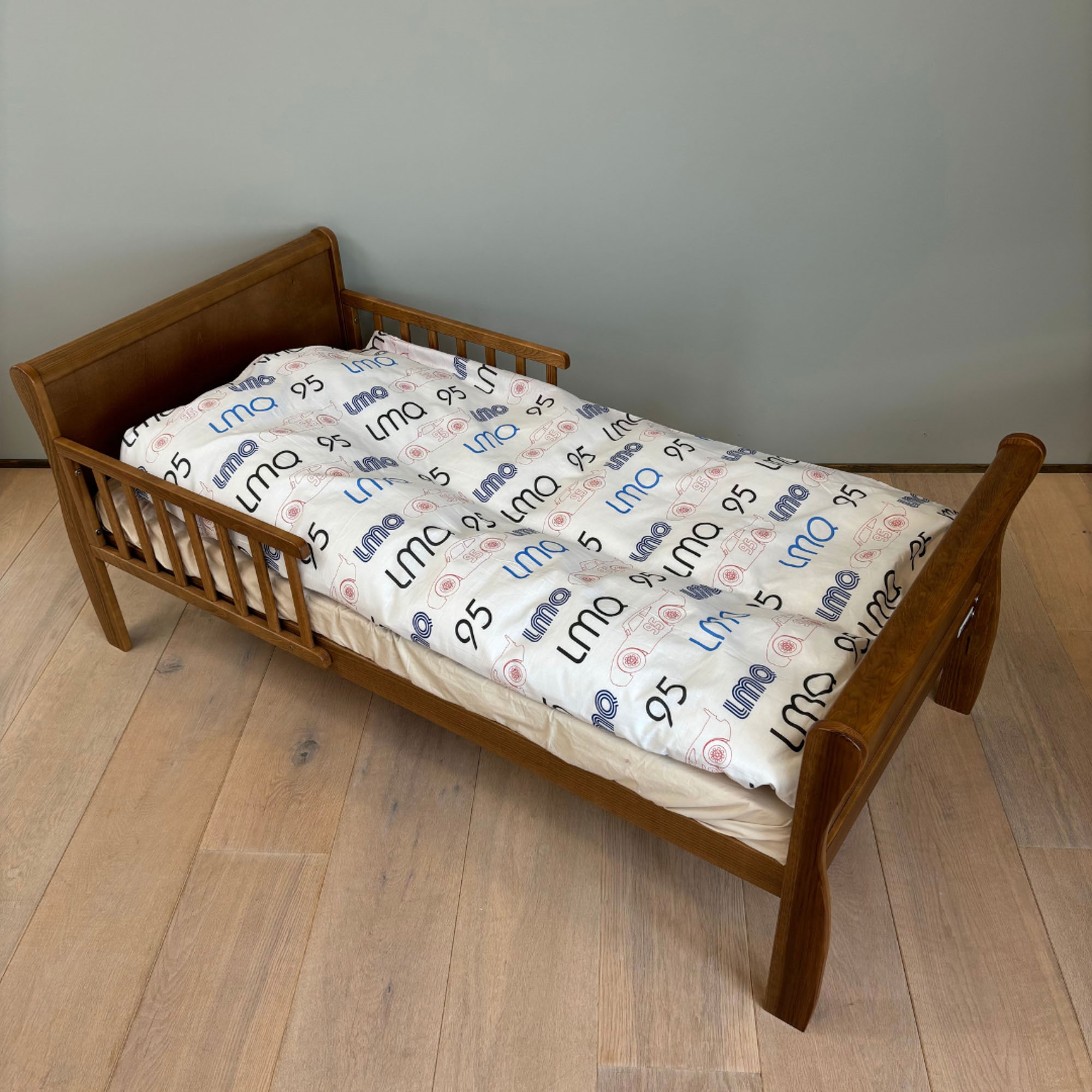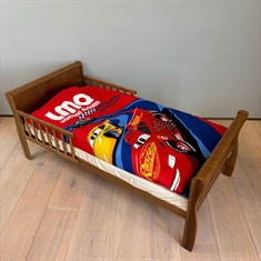 Framsidan »Sängkläder » Sängkläder för barn » Junior sengetøy 100x140 cm Cars sengetøy av flanell - 100x140 cm - Junior sengesett med Lynet McQueen - Vendbart motiv - 100% bomulls sengetøy Spara43% Licens 499,00285,00SEKSpara 214,- I lager Trustpilot Antal Lägg i varukorgen Se mer från: Licens Artikelnummer:1868-8 Les vår sengetøyguide Se vårt store utvalg av overmadrasslaken Se vårt store utvalg av dyner 140x200 Har du frågor om produkten? 100% myk bomullMykt, pustende og slitesterktOEKO-TEX® sertifisert Dynetrekk: 100x140 cm - junior sengesett Pudebetræk: 40x45 cm Materiale: 100% myk bomull Farge: Rød Motiv: Lynet McQueen Design: Vendbart - Forside med motiv av Lynet McQueen, bakside med små motiver og tekst Lukning: Dyne med knapper og pudebetræk med overlapp Vask: 60° Tørketrommel: Ja Tåler stryking: Ja Sertifisering: STANDARD 100 by OEKO-TEX® (11-26090 Shirley). Din garanti for at produktet er fritt for helseskadelig kjemi. Mykt sengetøy i 100% bomull, med design av Lynet McQueen. Produsert med lette og pustende bomullstråder som gir sengesettet en følelse av mykhet, som gjør at dynen føles deilig for barnet å sove med. Balansen i naturlige egenskaper og komfort fra det myke materialet, kombinert med det koselige designet, gjør dette settet til en sikker favoritt hos barnet ditt. Gjør sengetid til dagens høydepunkt med dette kule Lynet McQueen sengetøyet i 100% bomull. Perfekt for små racerkjørere som elsker det populære Cars-universet. Sengetøyet har den ikoniske røde racerbil Lynet McQueen, som vil vekke begeistring hos enhver liten fan. Det myke bomullsstoffet sikrer en behagelig og trygg natts søvn med mye komfort. Materialet er pustende, slitesterkt og holder fargene fine, selv etter mange vasker. Sengetøyet er OEKO-TEX® sertifisert, noe som betyr at det er fritt for skadelige stoffer og derfor helt trygt for barn å sove med. Se vårt store utvalg av Cars produkter til barneuniverset For barnet bør sengen være et trygt sted og alle elementene skal sammen skape myke og deilige omgivelser for barnet å finne ro i. Bruk derfor gjerne barnets interesser for å skape et trygt soverom for barnet. Hos oss kan du finne et stort utvalg av tilbehør til sengen og barnerommet, fra overmadrasslaken til dyner, puter, sengetøy og mye mer, og masse produkter med alle barnas favoritter på. Alt sammen elementer som kan bidra til å skape det rette sovemiljøet og rommet for ditt barn. Her kan du finne deilige og myke kvalitets overmadrasslaken Tillbaka till Junior sengetøy 100x140 cm