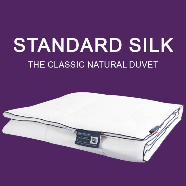 Den ledande leverantören av danska täcken i silke - Nordic ComfortNordic Comfort® är Danmarks mest sålda täcke i silke - det finns en anledning till det. Hälsosam sömn är forskningsbevisad – många tusen familjer sover med Nordic Comfort®. Därför har vi också ordnat ett samarbete med Nordic Comfort, så att du kan hitta de lyxiga täckena i silke i butiken här.Att säga att de på Nordic Comfort är passionerade, nästan besatta, av täcken, kuddar och god sömn kanske inte låter glamoröst, men det är sanningen. Varje dag ser de till att skapa den bästa sömnen genom sina täcken i silke och kuddar i silke. Nordic Comfort®-produkter bygger på nordiska värderingar och nordisk design. Vad är silke?Silke är en naturlig proteinfiber som spinns från trådändarna runt silkesfjärilens puppor. Silkekokongen består av en enda tråd av råsilke som kan bli upp till flera kilometer lång. De är lika starka som stål, vilket gör silke till den starkaste fibern i världen.Fjärilslarven spinner en kokong av silke för att skydda sig mot kyla, fukt och insekter medan den förvandlas från en liten, sårbar larv till en vuxen sidenfjäril. Silke består av två huvudsakliga proteiner: sericin och fibroin. Vad är sericin?Sericin är proteinet som omger silkefibrerna (fibroin) så att de håller ihop när fjärilslarven spinner dem till en kokong. Sericin har dessutom den antibakteriella egenskapen att skydda silkesmasken från bakterier och andra hot.Vad är fibroin?Fibroin är själva silkefibern. Det är fibroin som används till silkesgarn, silkestyg och silkesfyllning i silkestäcken- och kuddar. Fibroin är också isolerande och fuktabsorberande.Vad betyder det att sericin är antibakteriellt?Det betyder att sericin har den naturliga egenskapen att döda och hämma bakterietillväxt. Vanliga bakterier såsom Escherichia coli och Staphylococcus aureus minskas aktivt i närheten av sericin.Fungerar sericin även mot dammkvalster?Ja, sericin fungerar även mot dammkvalster. Enligt laboratorietester utförda av Airmid Health Group Ltd. för Nordic Comfort® visar sericinbehandlade SilkFX®-fibrer en 58 % minskning av levande dammkvalster efter bara åtta veckor jämfört med gåsdun. I slutet av testet hade gåsdun dubbelt så mycket (134%) dammkvalster, vilket gör gåsdun till ett mindre lämpligt val för personer med dammkvalsterallergi.Har alla täcken i silke antibakteriella och dammkvalsteravvisande egenskaper?Nej. Faktum är att de flesta täcken i silke inte har antibakteriella och dammkvalsteravvisande egenskaper. Endast täcken i silke behandlade med sericin är aktivt dammkvalsteravvisande och hämmar bakterietillväxt. Som konsument är det därför en god idé att kontrollera uppgifterna från tillverkaren av täcken i silke för att se om det verkligen är kliniskt bevisat att produkterna är dammkvalsteravvisande och antibakteriella, eller om tillverkaren bara gör oreserverade påståenden i försäljningssyfte.Var kommer silke ifrån?Silke kommer från Kina, som uppfann processen för att tillverka silke. De har tillverkat silke i över 5 000 år och är idag världens största producent av silke i hög kvalitet.Enligt en gammal kinesisk legend satt kejsarinnan LI-Ling för cirka 5000 år sedan under ett mullbärsträd när en silkesfjärilskokong föll ner i hennes te från trädet ovanför. När hon plockade upp kokongen lindades en fin tråd runt hennes finger. Detta blev början till att kvinnor började hålla silkeslarver som husdjur, och LI-Ling (som kejsarinnan hette) fick senare titeln 'Silkelarvens fru'. Silke blev snabbt en eftertraktad lyxvara. Under de följande 3000 åren hade kineserna monopol på denna kunskap, och några hundra år före Kristus öppnades 'sidenvägen' som var en karavanväg från Xian i Kina till Syrien. Silke handlades längs vägen och hittade så småningom sin väg till Europa. Här blev det en eftertraktad handelsvara på likvärdigt med guld. Idag är Mulberry-silke från Kina känt och uppskattat över hela världen. Långa och korta silkefibrerLånga silkefibrer är att föredra eftersom de är mycket bättre på att reglera temperatur och transportera svett än kortfibriga täcken i silke. Dessutom kommer du att uppleva att ett långfibrigt täcke i silke kan kännas fylligare än ett kortfibrigt täcke i silke.Om du vill uppnå full effekt av silke ska du därför välja ett täcke i silke med långa fibrer. Kortfibriga täcken i silke kommer dock fortfarande att reglera temperaturen och transportera bort svett, och har även de antibakteriella egenskaper som man också finner i de dyrare långfibriga täcken i silke. Varför välja ett täcke i silke framför ett duntäcke?Silke och dun har väldigt olika egenskaper, och om du ska välja det ena eller det andra beror på dina personliga preferenser och behov. Om du vill veta mer om duns egenskaper kan du ta en titt på vår dyneguide, där du kan läsa mycket mer.Silke har följande egenskaper, vilket vanligtvis gör att vissa kunder väljer silke framför dun.