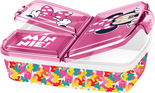 Minnie Mouse-matlådan är en praktisk och säker lösning för ditt barns lunch. Med en fin design är det en matlåda som kommer att glädja alla barn. Matlådan är indelad i tre fack, vilket gör det enkelt att separera olika typer av mat, en praktisk lösning för en varierad lunch.