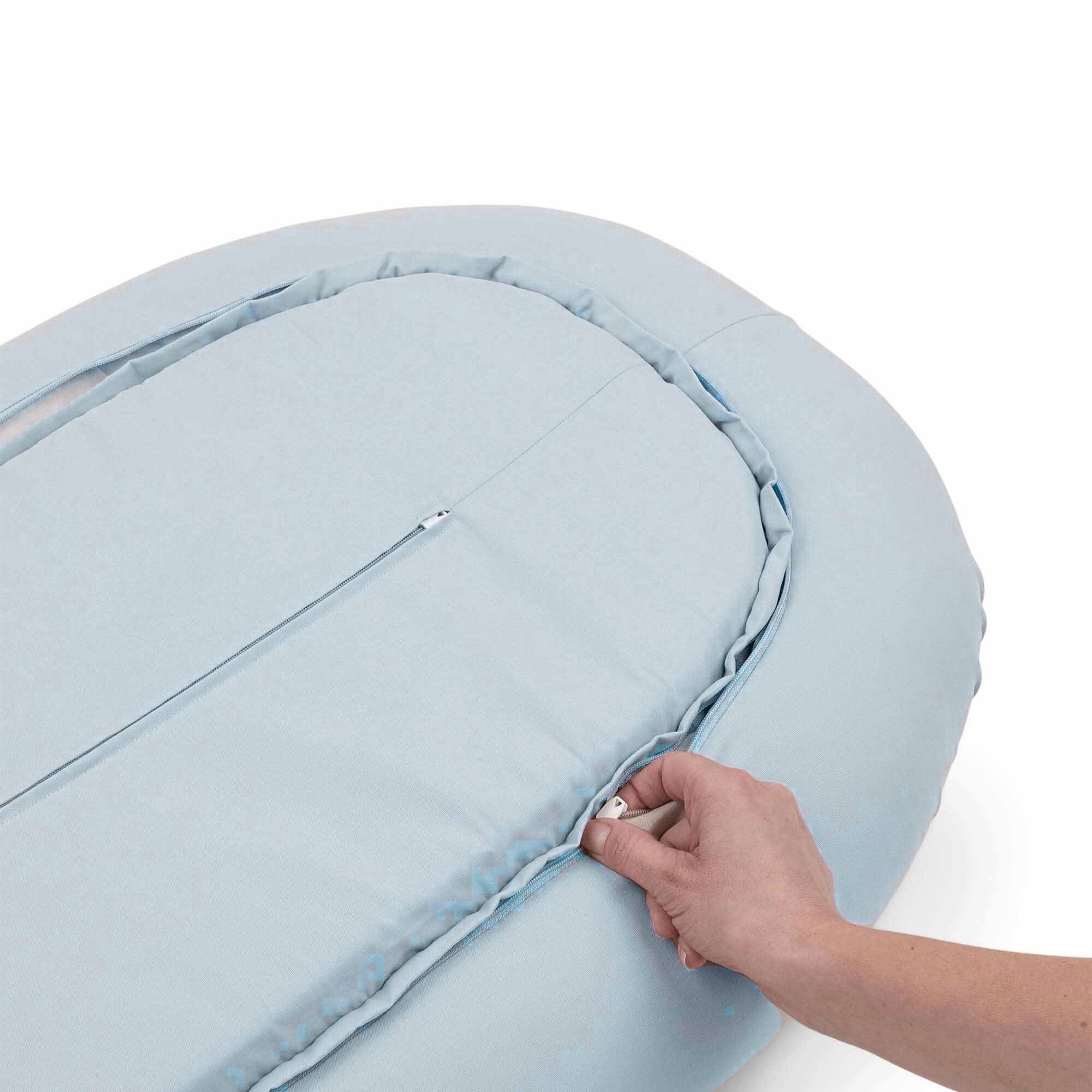 Med en praktisk, dold YKK-dragkedja kan madrassen enkelt tas ut, så både överdrag och fyllning kan tvättas separat. Babynestet kan dessutom öppnas i ena änden, så det kan anpassas efter barnets storlek och användas längre.