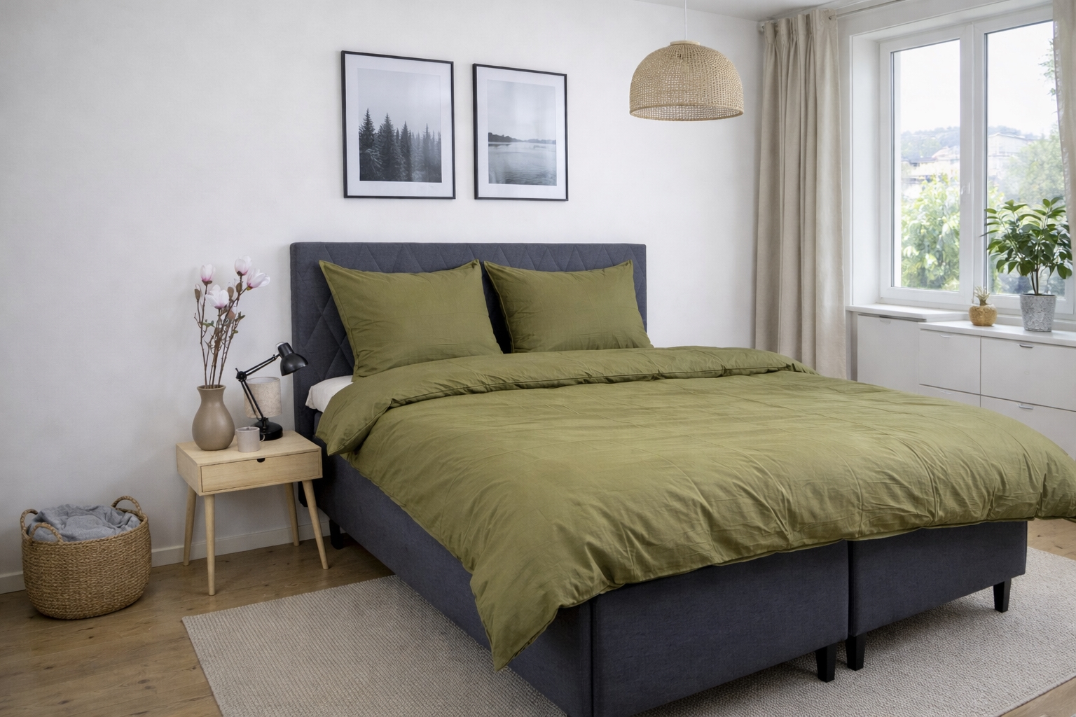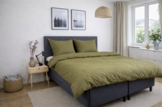 Påslakan och örngott är utrustade med dold invändig blixtlås som ger ett stilrent uttryck och gör det enkelt att byta sängkläder. Den gröna nyansen och det enfärgade designen gör bäddsetet lätt att kombinera med både ljusa och mörka element i sovrummet.
