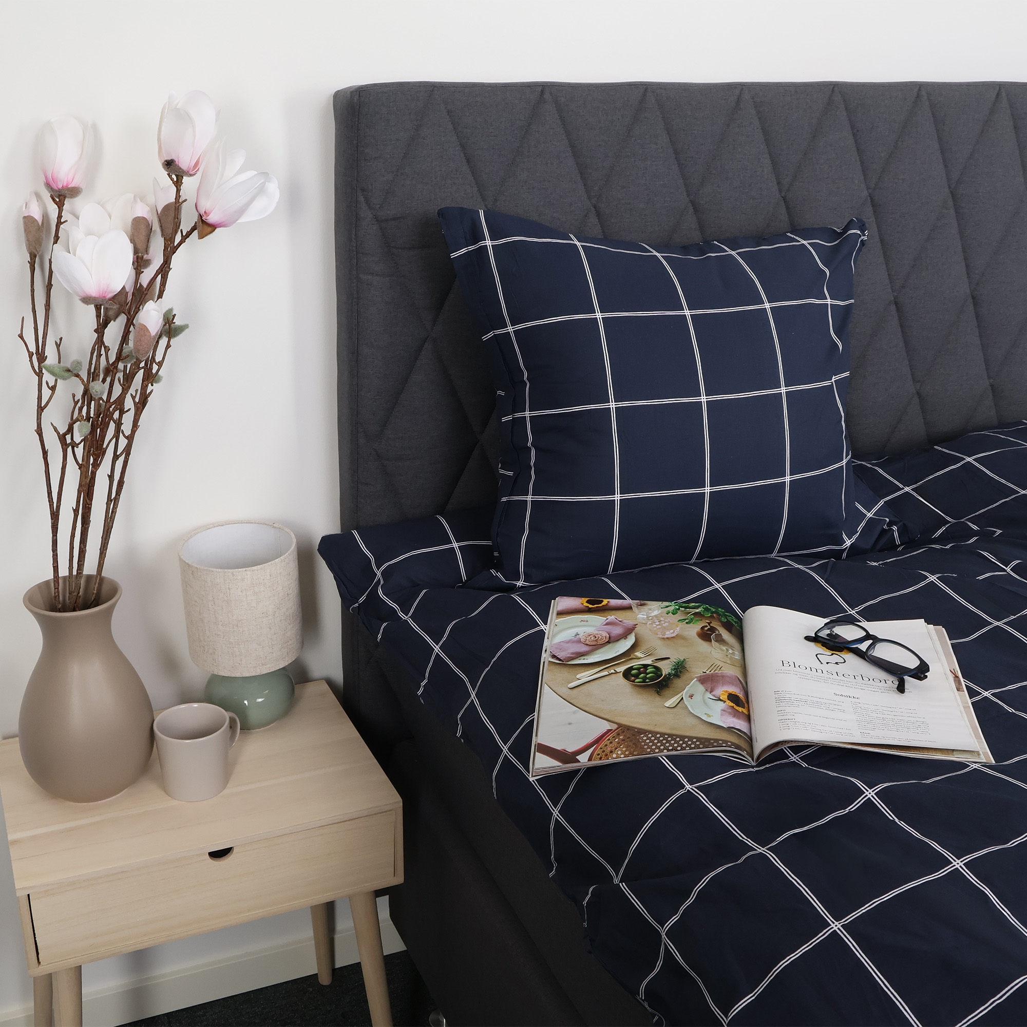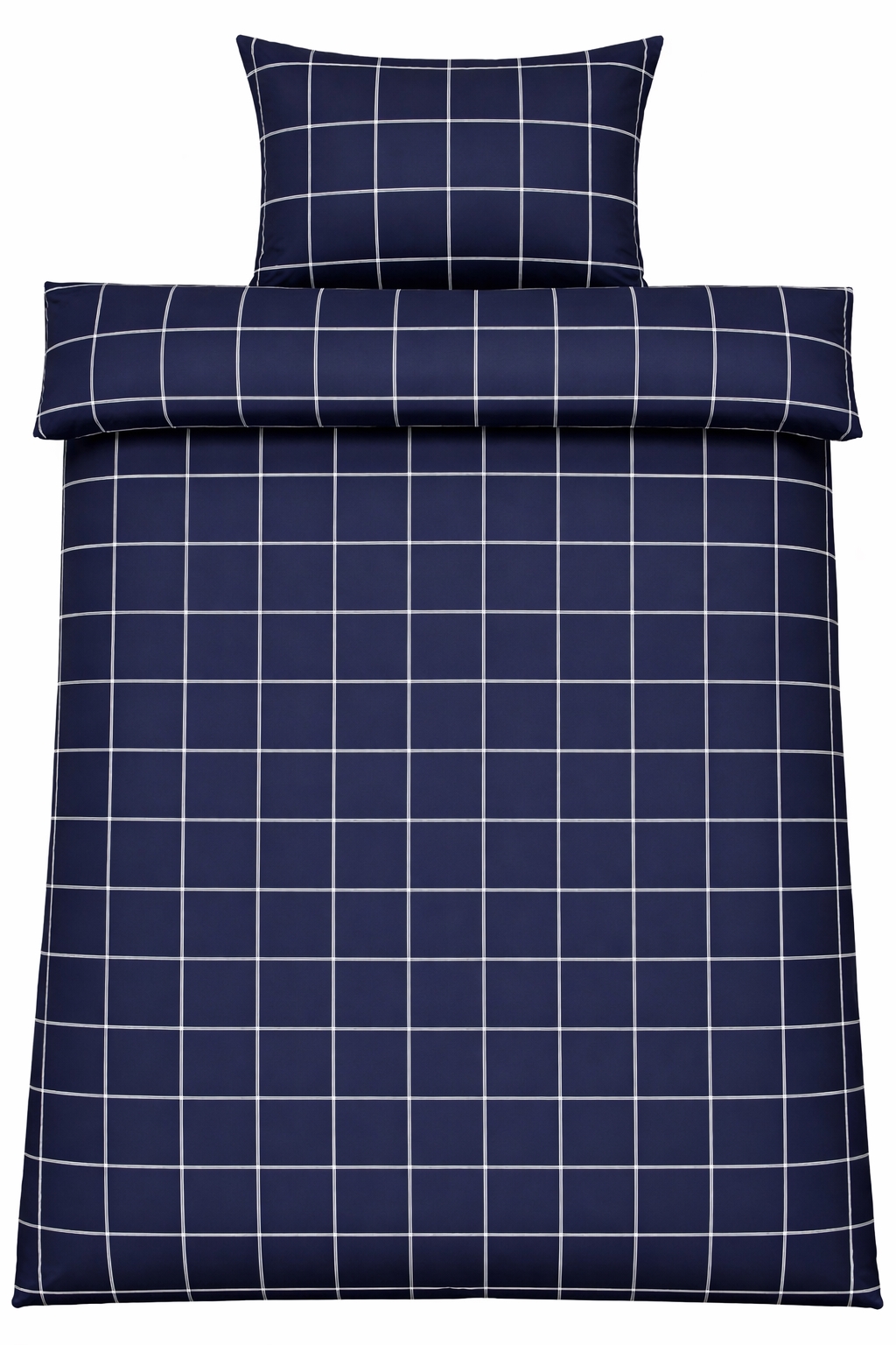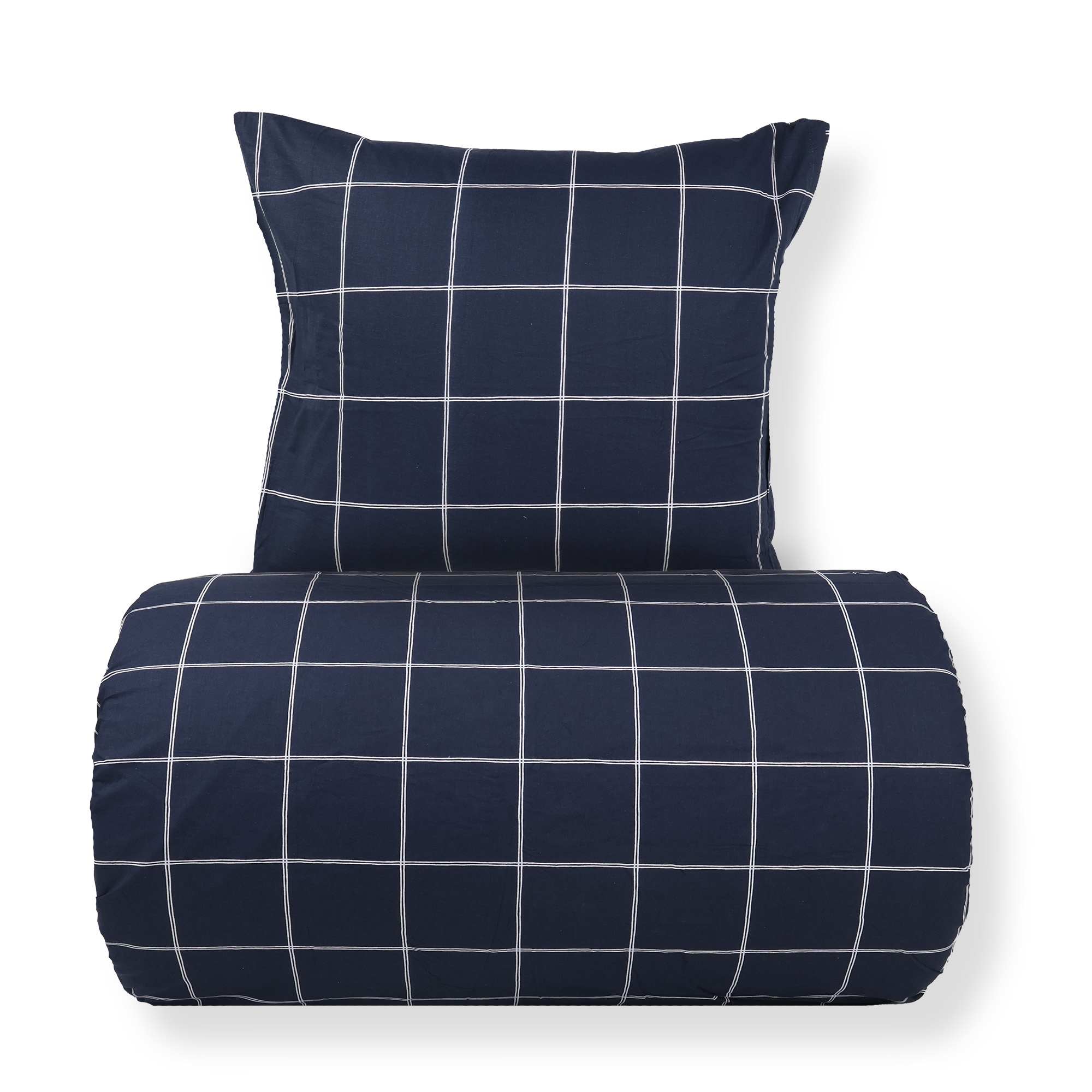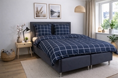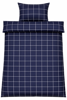 Dubbelt påslakanset i bomull med blått rutigt mönster
