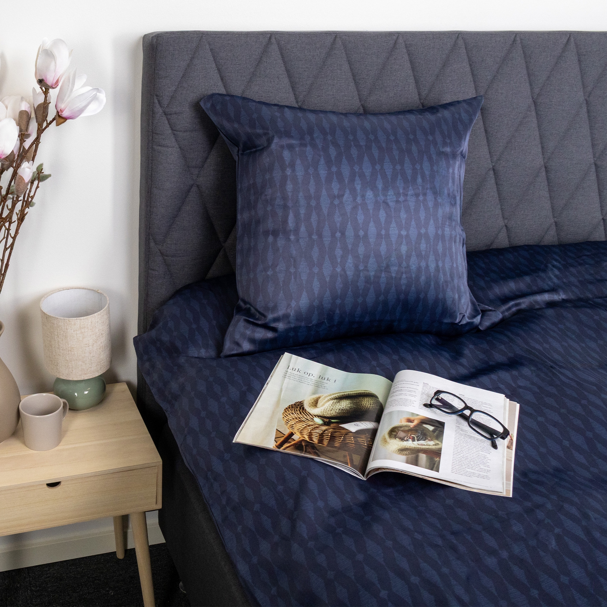 Framsidan »Sängkläder Dubbelt påslakanset 200x220 cm - Satin - Mörkblått mönster 2 x kuddfodralSpara39% In Style 649,00399,00SEKSpara 250,- I lager Trustpilot Välj storlek Välj alternativ Antal Lägg i varukorgen Se mer från: In Style Artikelnummer:646-5 Läs vår sänglinneguide Se vårt stora utbud av lakan Se vårt stora utbud av täcken 200x220 Har du frågor om produkten? Slät och mjuk satinytaSkrynkelfritt och snabbtorkande materialVacker färgäkthet som håller tvätt efter tvätt Påslakan: 200x220 cm Örngott: 2 st. á 60x63 cm Material: 100% polyestersatin Vävning: 150TC (Thread count = antal trådar per kvadrattum) Färg: Mörkblå Design: Mönster Brand: IN Style Stängning: Påslakan och örngott med invändig dragkedja Tvätt: 40° Torktumling: Ja, vid låg temperatur Tål strykning: Ja, vid låg värme Certificering: STANDARD 100 by OEKO-TEX® (2022OK2176). Din garanti för att produkten är fri från hälsofarlig kemi. Dubbelt påslakanset i polyestersatin med mönster Skapa ett elegant uttryck i sovrummet med detta påslakansset för dubbeldyna i 100% polyestersatin med mönster. Polyestersatin är vävd i en satinbindning, vilket ger en slät, mjuk och lätt glansig yta. Materialet känns otroligt mjukt mot huden och ligger lätt över kroppen, vilket bidrar till en behaglig natts sömn. Samtidigt är polyestersatin känd för sin höga slitstyrka och förmåga att behålla både form och färg tvätt efter tvätt. Dubbelt påslakanset är det idealiska valet för dig som använder dubbeldyna och önskar ett enhetligt och lugnt uttryck i sängen. Dubbelt påslakanset ger god rörelsefrihet natten igenom och passar både par och dig som vill ha extra plats och komfort. I detta set medföljer ett påslakan och två örngott. Polyesterfibrerna gör sänglinnet snabbtorkande och mycket lätt att underhålla. Polyestersatin skrynklar minimalt, vilket betyder att sängen framstår snygg och slät utan stort behov av strykning. Det gör sängsetet idealiskt för dig som vill ha ett fint resultat med minimal insats i vardagen. Påslakan och örngott stängs med invändig dragkedja, som håller täcket säkert på plats och ger ett stilrent uttryck. Sänglinnet är certifierat enligt STANDARD 100 by OEKO-TEX®, vilket är din garanti för att produkten är testad och fri från hälsofarlig kemi. Det kan tvättas vid 40 grader och tål torktumling vid låg temperatur. Se allt vårt sänglinne i polyestersatin här IN Style IN Style erbjuder ett brett urval av fantastiska sängset i microfiber samt lätta och luftiga fiber-sommar- täcken. IN Style är producerat av Borg Design, som har funnits sedan 2013 och som är känt för sin nytänkande inom både kvalitet och design, vilket säkerställer att du får bästa förutsättningar för en god natts sömn. Se hela utbudet från IN Style här Tillbaka till Sängkläder