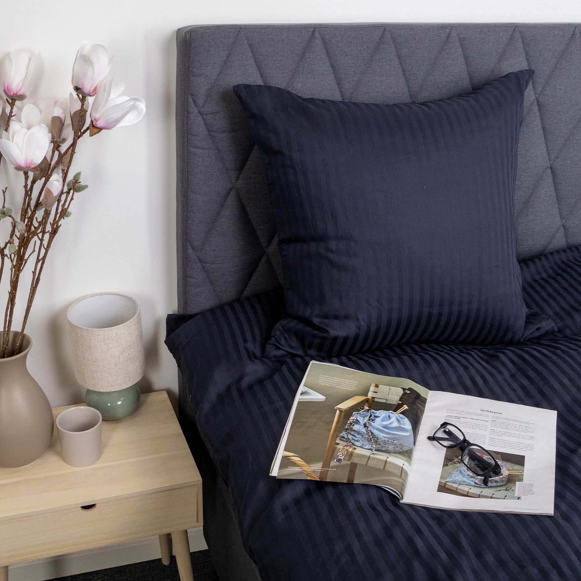 Skapa ett elegant och exklusivt uttryck i sovrummet med detta mörkblå randiga påslakanset i 100% bomullssatin. Påslakanet kombinerar klassisk design med hög komfort och är skapat för dig som önskar både lyx och funktionalitet i vardagen.