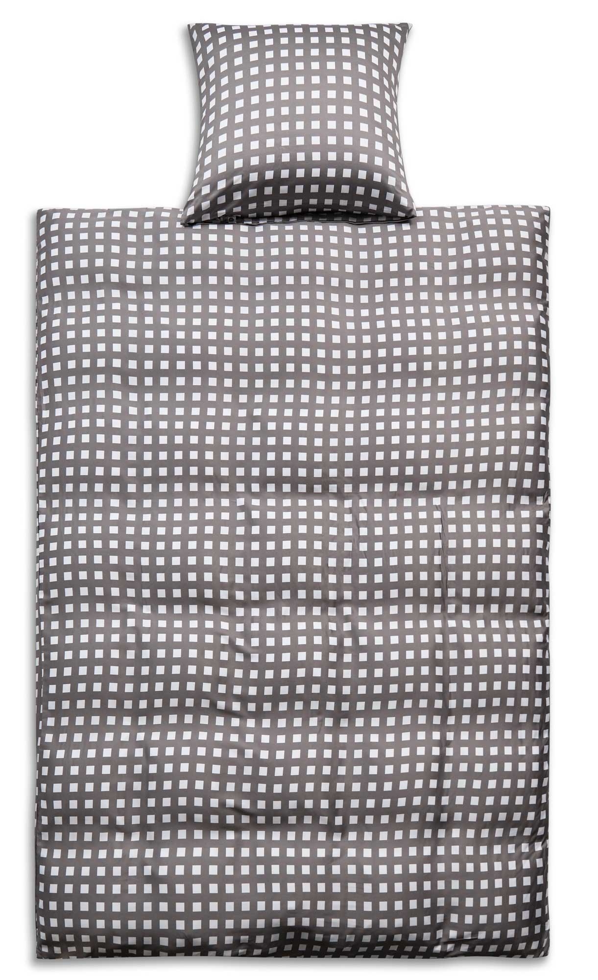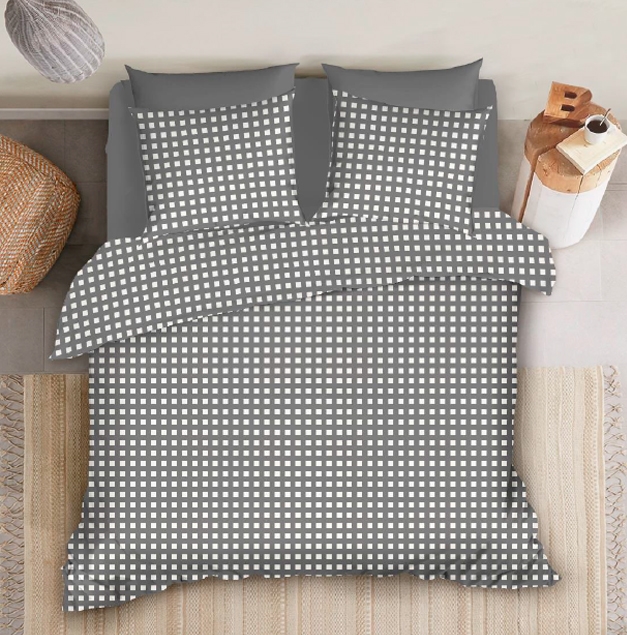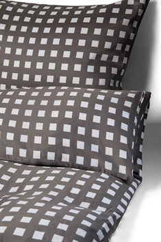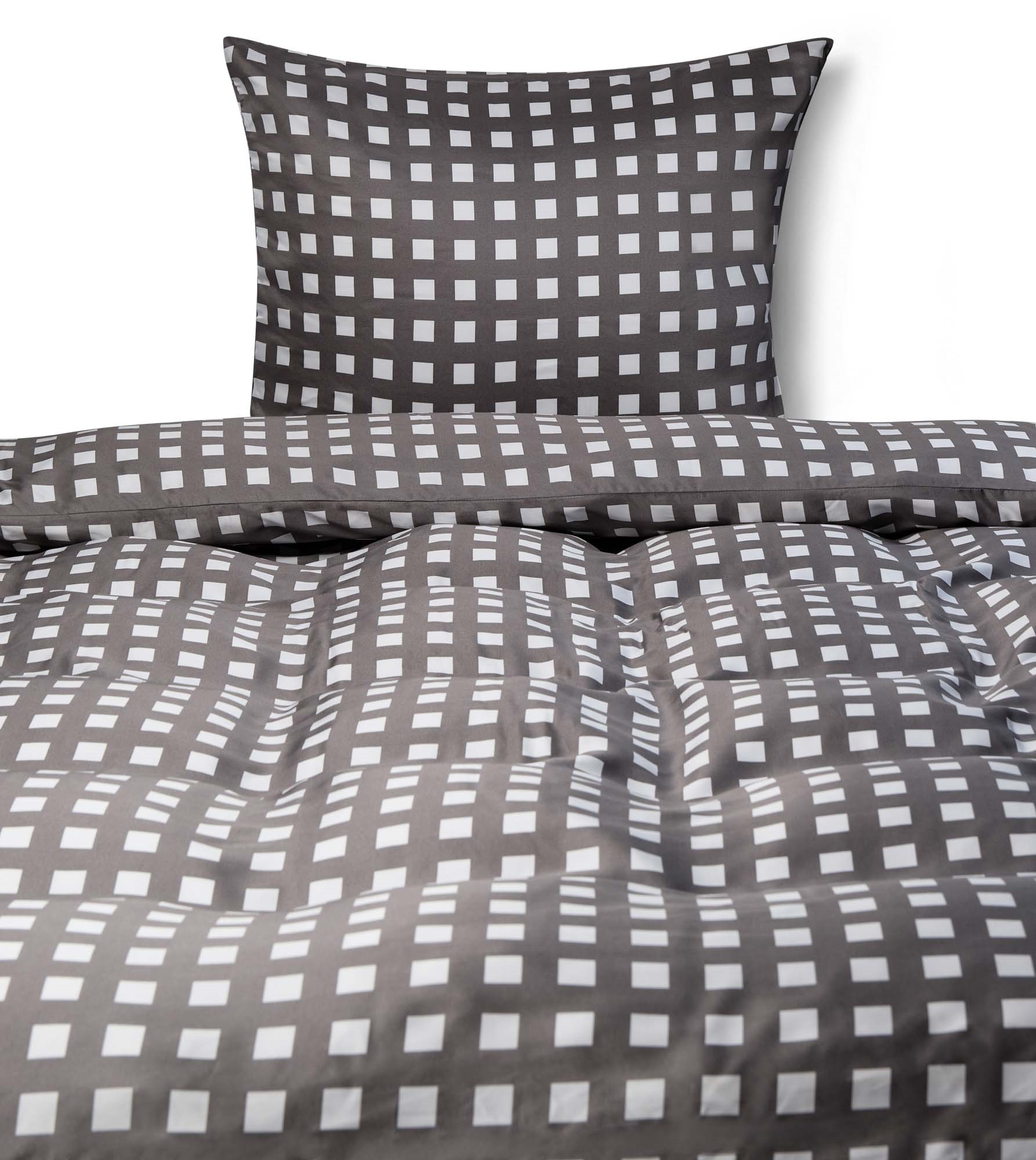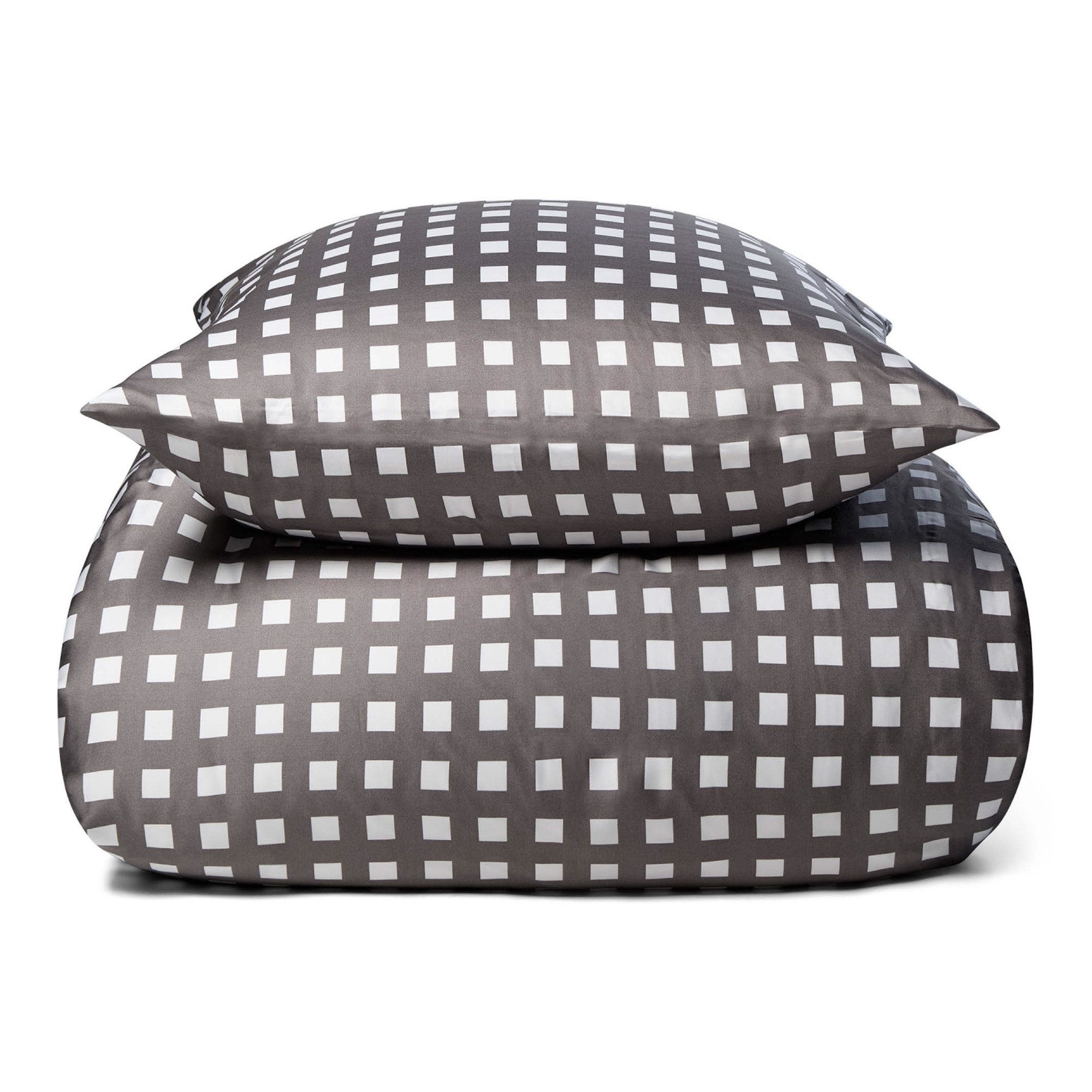 Dubbelt påslakanset i bambu - 100% naturlig bambu - 200x200 cm - Rutig grå - Satinvävt dubbelt påslakanset