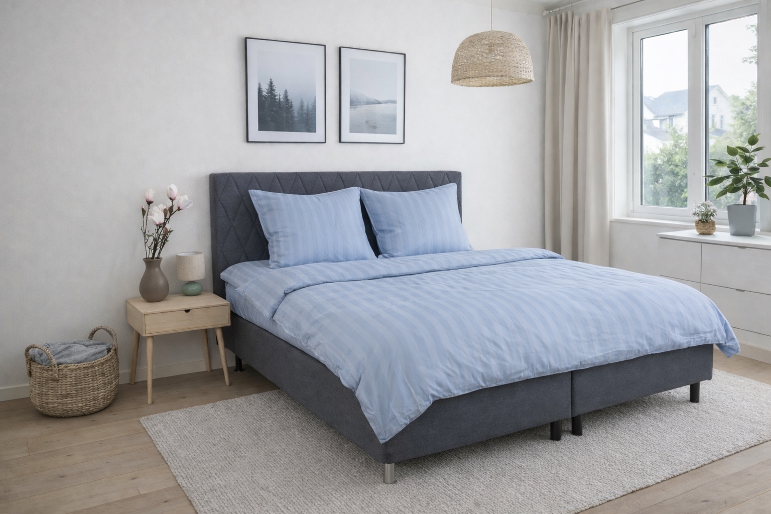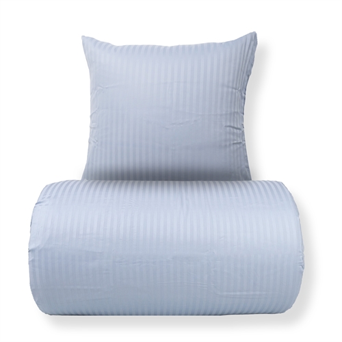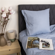 Skapa ett elegant och exklusivt uttryck i sovrummet med detta ljusblå randiga sänglinne i 100% bomullssatin. Sänglinnet kombinerar klassisk design med hög komfort och är gjort för dig som vill både lyx och funktion i vardagen.