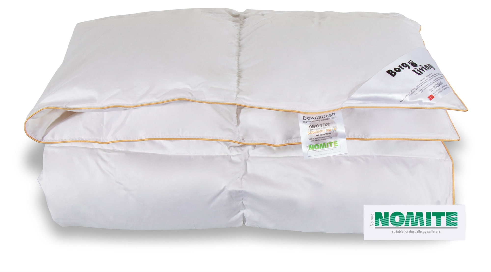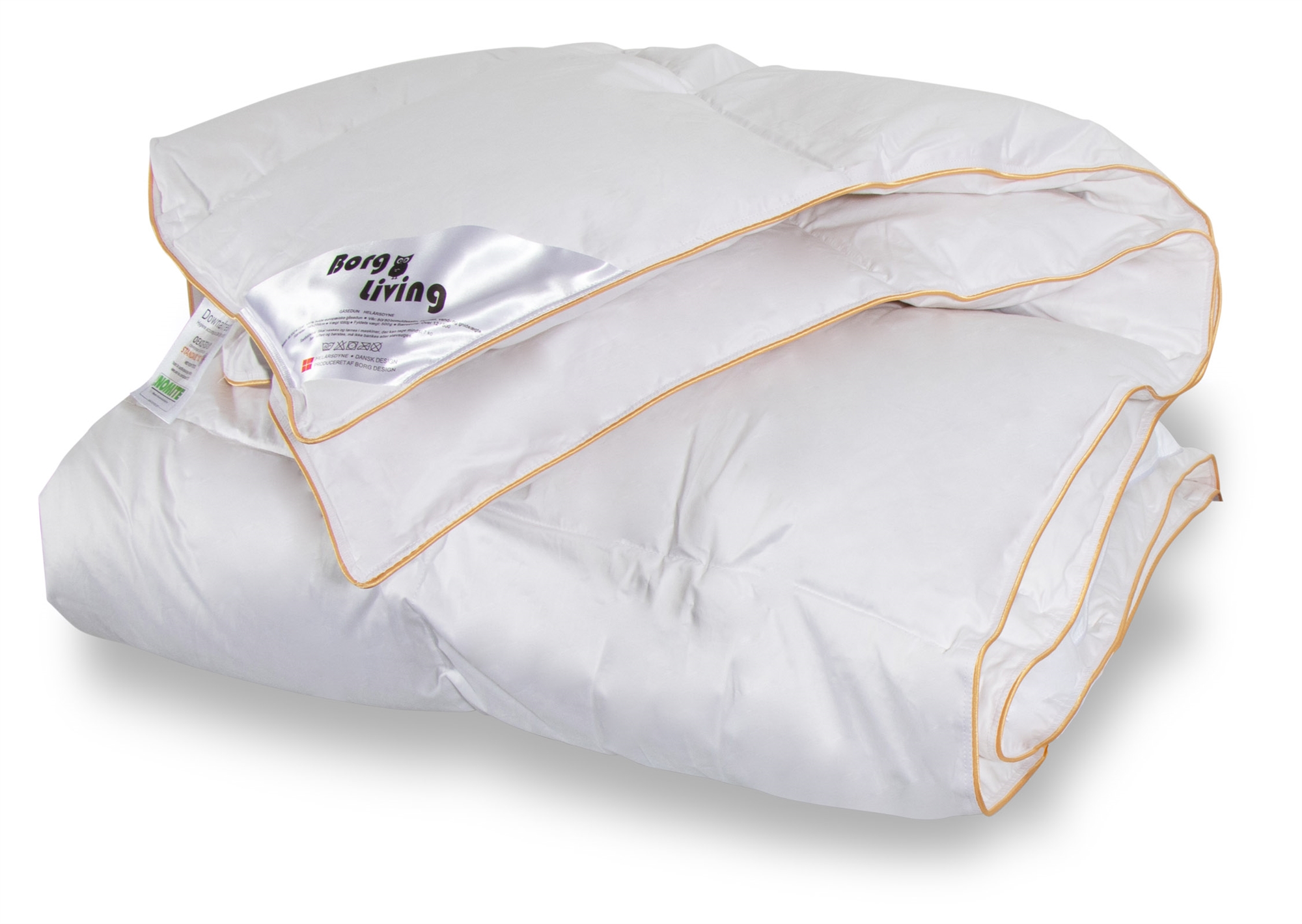 Framsidan »Täcken » Dubbeltäcken » Dobbeltdyna 200x200 cm Dubbeltäcke med gåsdun 200x200 cm - Helårstäcke - Borg Living dubbeltäcke 100 % gåsdun Spara57% Borg Living 6.499,002.799,00SEKSpara 3.700,- Fri frakt på denna varaI lager Trustpilot Antal Lägg i varukorgen Se mer från: Borg Living Artikelnummer:BL564 Läs vår täckesguide Läs om underhåll av täcken och kuddar Se vårt stora utbud av kuddar Har du frågor om produkten? Gåsduntäcke - Borg LivingBärighet: över 12100 % europeiskt gåsedun Storlek: 200x200 cm - dubbeltäcke Typ: Helårstäcke Fyllning: 100 % vita och rena europeiska gåsdun Fyllvikt: 730g Bärighet: Över 12 (gammal mätmetod) Bärighet: 800 (ny mätmetod) Yttertyg: 100 % bomullssatin 80/80 (extra fint och mjukt) Konstruktion: 7x7 kassettäcke med guldkant Tvätt: 60° (Viktigt att använda enzymfritt tvättmedel) Torktumling: Torktumlas med torkbollar Garanti: 5 år Certifiering: STANDARD 100 by OEKO-TEX® Certifiering: NOMITE Certifiering: DOWNAFRESH Certifiering: Down pass - Högsta djuretiska standard Se alla våra kuddar här Helårstäcke med gåsdun från Danske Borg Living. Detta helårstäcke är fyllt med 730 g vitt, mjukt och luftigt europeiskt gåsdun som ger ett fantastiskt fylligt täcke helårs. Täcket har en bärighet på över 12 och är särskilt lämpligt för dig som älskar ett bra och jämnt tempererat helårstäcke att krypa under. Se vårt stora utbud av sängkläder i 200x220 cm här Täcket är sytt i 7x7 kassetter, med invändiga kanalväggar som ser till att dunen fördelas jämnt i täcket - utan att skapa köldbryggor. Yttertyget består av 100 % mjuk och härlig 80/80 bomullssatin, som är så tätvävd att husdammskvalster inte kan tränga igenom - Bomullssatintyg är det mjukaste och mest lyxiga tyget som finns på marknaden. Det danska varumärket Borg Living producerar exklusiva serier av täcken, kuddar och hemtextilier för ditt hem. Märket som etablerades 2013 är känt för sin innovativa syn på kvalitet och design. Borg Livings fantastiska produkter bidrar till en optimal och bekväm nattsömn och dekorerar ditt hem med moderna och snygga hemaccessoarer. Tillbaka till Dobbeltdyna 200x200 cm