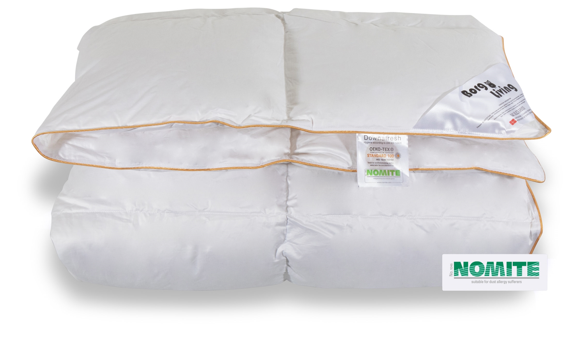 Framsidan »Täcken » Dubbeltäcken » Dubbeltäcke 200x220 cm Dubbeltäcke 200x220 cm med gåsdun - Vinter dubbeltäcke - Borg Living täcke Spara55% Borg Living 7.499,003.399,00SEKSpara 4.100,- Fri frakt på denna varaI lager Trustpilot Antal Lägg i varukorgen Se mer från: Borg Living Artikelnummer:BL557 Läs vår täckesguide Läs om underhåll av täcken och kuddar Se vårt stora utbud av kuddar Har du frågor om produkten? 100 % gåsdun - Borg LivingBärighet: över 12Varmt dubbeltäcke Storlek: 200x220 cm - dubbelt täcke Typ: Varmt täcke Fyllning: 100 % vitt och rent europeiskt gåsdun Varumärke: Borg Living Fyllvikt: 1050 g Bärighet: Över 12 (gammal mätmetod) Bärighet : 800 (Ny mätmetod) Yttertyg : 100 % bomullssatin 80/80 (Extra fin och mjuk) Konstruktion: 6x6 kassettäcke med guldkant Tvätt: 60° (Viktigt att använda enzymfritt tvättmedel) Torktumling: Torktumlas med torkkulor Garanti: 5 år Certifiering: STANDARD 100 by OEKO-TEX® (BEHO-062282) Certifiering: NOMITE Certifiering: DOWNAFRESH Certifiering: Down pass - Högsta djuretik Se alla våra kuddar här Varmt helårstäcke med gåsdun från Danske Borg Living. Detta helårstäcke är fyllt med 1050 g vitt, mjukt och luftigt europeiskt gåsdun, vilket ger ett fantastiskt fylligt helårstäcke. Täcket har en bärighet på över 12 och är perfekt för dig som vill ha ett bra och jämnt tempererat täcke för alla årstider. Se vårt stora utbud av sängkläder i 200x220 cm här Täcket är sytt i 7x7 kassetter med invändiga kanalväggar, som ser till att dunet fördelas jämnt - utan att skapa köldbryggor. Yttertyget är tillverkat av 100% mjukt och lyxigt 80/80 bomullssatin, som är så tätvävt att husdammskvalster inte kan tränga igenom. Bomullssatinyttertyget är det mjukaste och mest lyxiga yttertyget som finns på marknaden. Det danska varumärket Borg Living producerar exklusiva serier av täcken, kuddar och hemtextilier för ditt hem. Varumärket, etablerat 2013, är känt för sin innovation inom kvalitet och design. Borg Livings fantastiska produkter bidrar till en optimal och bekväm nattsömn, samtidigt som de dekorerar ditt hem med moderna och stiliga hemaccessoarer. Tillbaka till Dubbeltäcke 200x220 cm Du kanske också är intresserad av: Kudde "Hög" kudde - 60x63 cm - med gåsdun - kudde med tre kammare - Feng Shui EkologiskFeng Shui - Hög gåsdunskudde Bärighet: över 10 Ekologisk kudde 2.099,95 SEK1.699,00 SEK Kudde 'Medium/hög' - 60x63 cm - med gåsdun - 3-kammare kudde - Feng Shui EkologiskFeng Shui - Medium/hög kudde Bärighet: över 10 Ekologisk kudde 1.999,00 SEK1.599,00 SEK