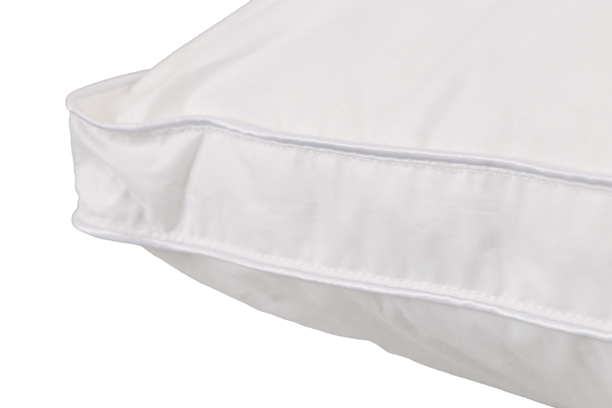 Kudden är av supercambric i bomull, som är tät och har den ursprungliga kuddkänslan. Dessutom är kudden försedd med en 3 cm hög boxkant, vilket hjälper till att ge dig en fluffig och fyllig kudde, där fyllningen lätt fördelas i hela kudden. Du kommer därför inte att uppleva att kudden 'toppar' lika högt i mitten utan att du kan använda hela kudden om du t.ex. är en person som vänder sig ofta i sömnen.