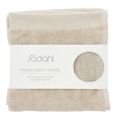 Den mjuka och fylliga kvaliteten på 500 g/m² ger en behaglig känsla mot huden, samtidigt som den höga uppsugningsförmågan säkerställer att händerna torkas snabbt. Den eleganta beige färgen och den diskreta vävda bården med Södahls logotyp ger ett stilrent och exklusivt uttryck i badrummet.