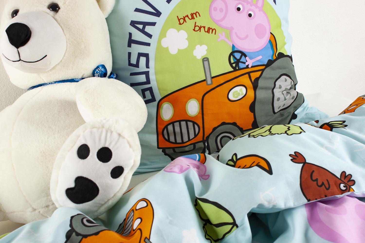 Framsidan »Sängkläder » Sängkläder för barn » Sängkläder för Barn 140x200 cm Ekologiskt Gustav Gris sengetøy 140x200 cm - Gustav Gris och traktor - Sengesett i 100% ekologisk bomull Spara30% Licens 549,00385,00SEKSpara 164,- I lager Trustpilot Antal Lägg i varukorgen Se mer från: Licens Artikelnummer:160012-1 Läs vår guide för sengetøy Se vårt stora utbud av lakan Se vårt stora utbud av täcken 140x200 Har du frågor om produkten? Allergivänligt100% ekologisk bomullOEKO-TEX® certifierat Påslakan: 140x200 cm Kuddfodral: 60x63 cm Material: 100% ekologisk bomull Färg: Ljusblå Motiv: Gustav Gris traktor Design: Vändbar - Framsida med Gustav Gris som kör traktor, baksida med all-over print Stängning: Dragkedja Tvätt: 60° Torktumling: Ja Tål strykning: Ja Certifiering: STANDARD 100 by OEKO-TEX® (2012PK0106 AITEX). Din garanti för att produkten är fri från skadliga kemikalier. Sengesett i 100% ekologisk bomull, med Gustav Gris som kör traktor. Med lätta och andningsbara bomullstrådar ger detta sengesett en mjuk yta som gör täcket behagligt för barnet att sova med. Ett slitstarkt och allergivänligt sengesett med hög andningsförmåga och absorberingsförmåga, som hjälper till att göra sovstunden till en trevlig upplevelse. Sengetøy med den lilla, glada och ljusrosa Gustav Gris. Setet är vändbart och har på ena sidan ett motiv av Gustav Gris som kör traktor, medan baksidan är fylld med små teckningar av Gustav och gårdsfigurer. Det är alltid en bra idé att använda barnets intressen för att skapa en tryggare och mer spännande sovmiljö för barnet. Sengesettet är tillverkat i 100% ekologisk bomull vilket gör setet allergivänligt, slitstarkt och med hög andningsförmåga. Den rena bomullskvaliteten ger ett härligt och mjukt sengesett som bidrar till att främja sovkomforten för barnet. Bomullssengetøy kan tvättas i 60° i tvättmaskin, vilket också hjälper till att hålla en hög hygiennivå. Sengetøyet är dessutom OEKO-TEX certifierat, vilket är din garanti för att setet är fritt från skadliga kemikalier. Utforska favoriterna och mycket mer i vårt stora utbud av tillbehör till barnuniversum För barnet bör sängen vara en trygg plats och alla element ska tillsammans skapa mjuka och härliga omgivningar där barnet kan finna ro. Använd därför gärna barnets intressen för att skapa ett tryggt sovrum för barnet. Hos oss kan du hitta ett stort utbud av tillbehör till sängen och barnrummet, från övermadrasslakan till täcken, kuddar, sengetøy och mycket mer, samt massor av produkter med alla barnens favoriter. Alla dessa element kan bidra till att skapa rätt sovmiljö och rum för ditt barn. Här kan du hitta fina och mjuka kvalitetslakan Tillbaka till Sängkläder för Barn 140x200 cm