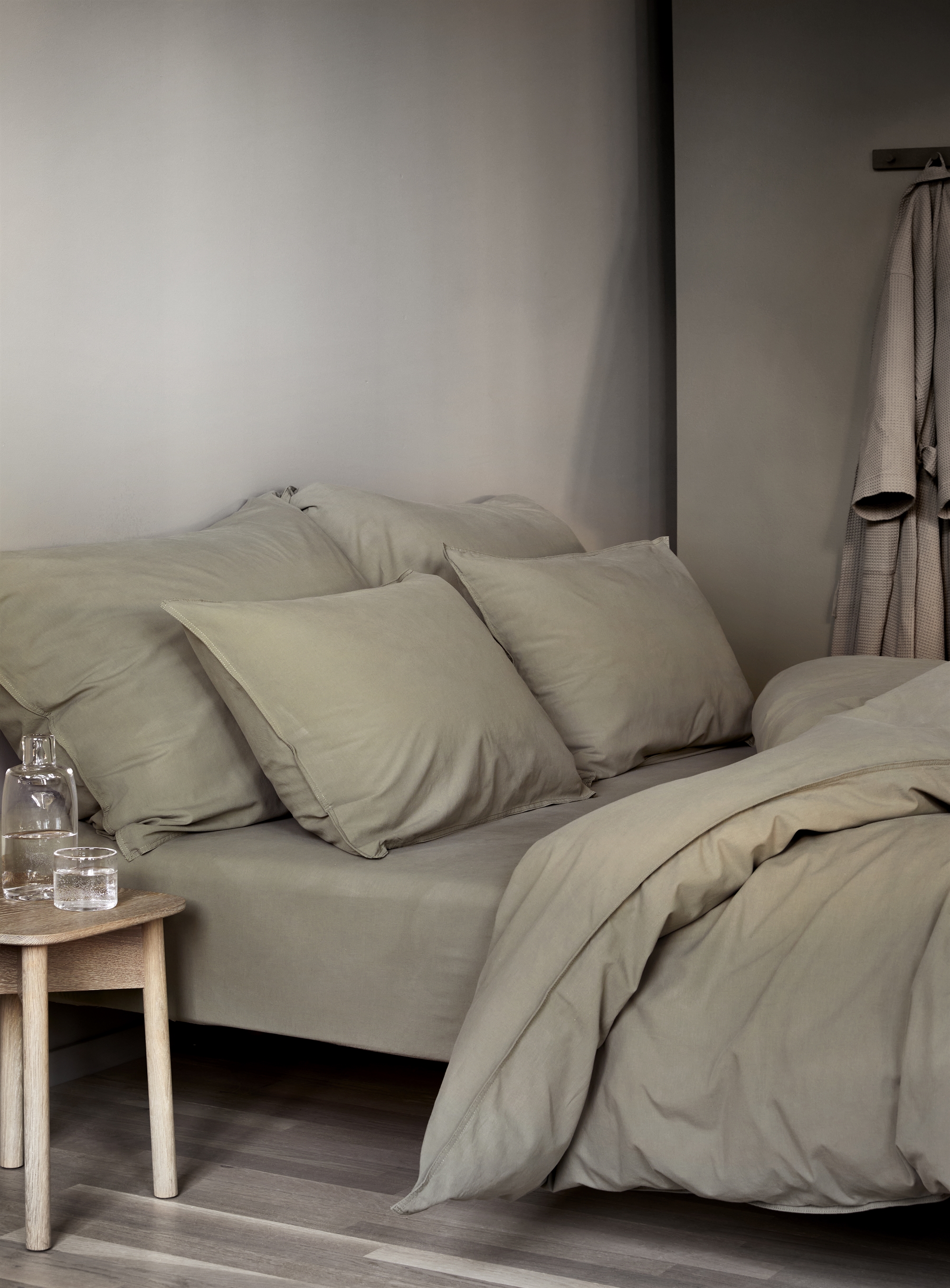 Framsidan »Sängkläder » Enkelt påslakanset » Extra långa sängkläder 140x220 cm Ekologiskt sänglinne 140x220 cm - 100% stenvättad bomull - Frøya olivgrön - Høie of Scandinavia sänglinne Spara23% Høie Of Scandinavia 1.299,00999,00SEKSpara 300,- Fri frakt på denna varaI lager Trustpilot Antal Lägg i varukorgen Se mer från: Høie Of Scandinavia Artikelnummer:8243-2 Läs vår sängklädesguide Se vårt stora utbud av lakan Har du frågor om produkten? Stenvättad bomull - För en rå lookExtra fin vävningSvanen Påslakan: 140x220 cm Örngott: 1 st. á 60x63 cm Material: 100% stenvättad, ekologisk bomull Vävning: Extra fin 300TC (Thread count = antal trådar per kvadrattum) Färg: Olivgrön Design: Frøya olivgrön Brand: Høie of Scandinavia Stängning: Påslakan med knappar, örngott med överlapp Tvätt: 60° Torktumling: Ja Strykning: Ja Certifiering: Svanen (2112 0008) Certifiering: MADE IN GREEN by OEKO-TEX® (M1VLV2KU7). Din garanti för att produkten är fri från hälsofarlig kemi. Härligt sänglinne i 100% ekologisk bomull, som både är skonsamt mot miljön och mjukt mot huden. Påslakansetet är garnfärgat vilket säkerställer en hållbar färg som förblir fin tvätt efter tvätt. Det stenvättade utseendet ger en mjuk och lätt skrynklig yta. Bra att veta är att i Frøya-serien används 30% mindre vatten än vid traditionella färgningsmetoder. Frøya-serien är producerad av 100% ekologisk bomull, som är garnfärgad och stenvättad, vilket mjukar upp fibrerna och just den unika behandlingen gör att påslakansetet får den riktiga stonewashed-finishen och ett naturligt skrynkigt utseende. Att setet är garnfärgat innebär att bomullstråden färgas innan vävningen. Det har valts bomull som är känd för sin renhet och höga slitstyrka, och de extra fina bomullstrådarna känns behagliga mot huden. Om du gillar ett rått sänglinne som du kan älska år efter år, är det Frøya-serien du ska låta lysa i sovrummet. Stenvätten ger också sänglinnet ett mer avslappnat uttryck som skrynklar sig på precis rätt sätt. Bra att veta är att i Frøya-serien används 30% mindre vatten än vid traditionella färgningsmetoder - och att det är Svanen för en bättre morgondag. Setet är OEKO-TEX-certifierat, vilket betyder att det testats fritt från hälsofarliga kemikalier. Detta är ett tecken på ansvarsfull produktion som inte bara gynnar miljön, utan även vår kropp och hud, då det minskar risken för allergiska reaktioner. Se hela utbudet från Høie här Høie är ett skandinaviskt varumärke som står för tradition förenat med nytänkande. Företaget har funnits sedan 1850 och har genom åren varit med och format och utveckla skandinavisk textil och design. Sänglinne från Høie är vardagslyx som alla förtjänar. Hitta kvalitetslakan här Tillbaka till Extra långa sängkläder 140x220 cm