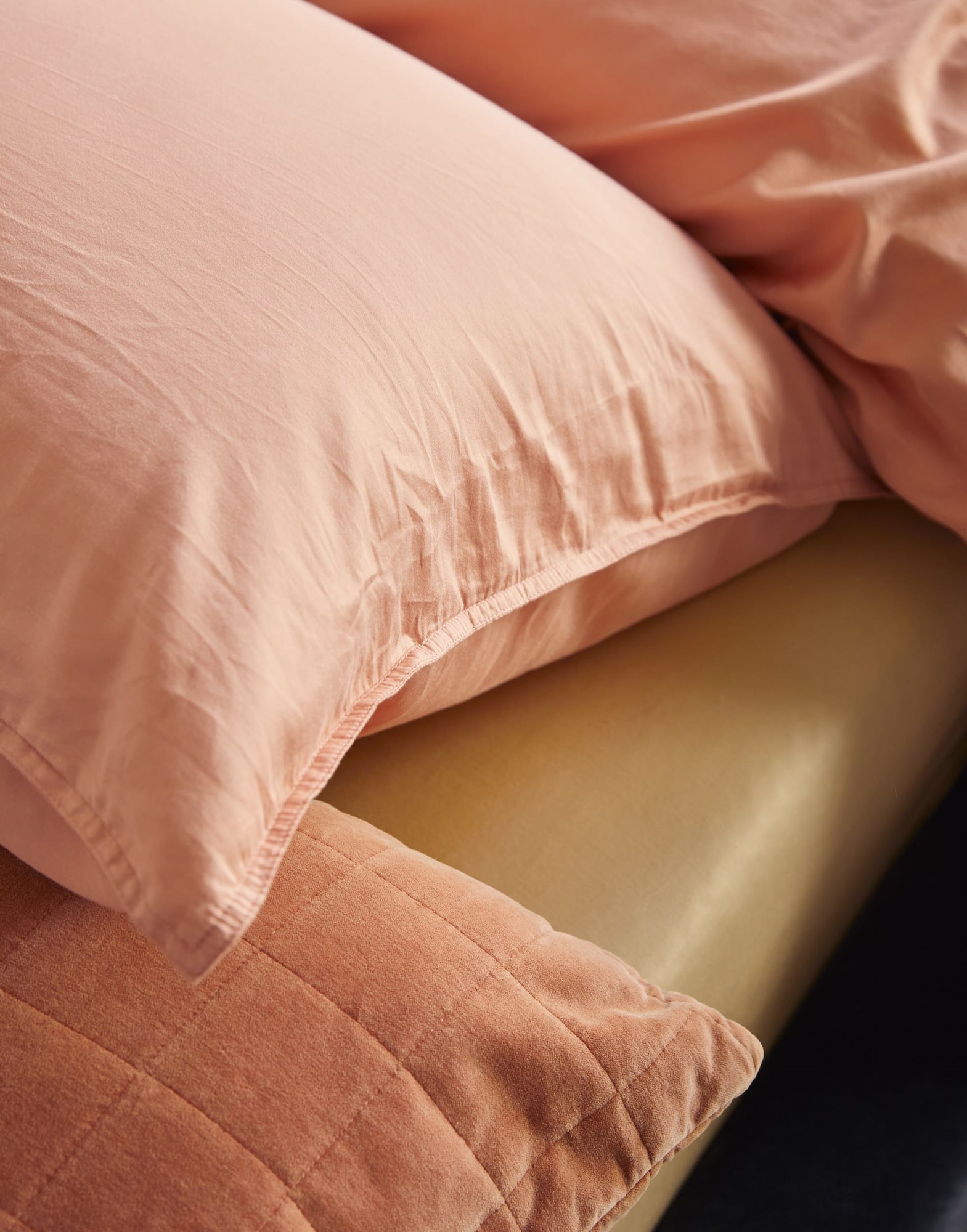 Framsidan »Sängkläder » Enkelt påslakanset » Extra långa sängkläder 140x220 cm Essenza sängkläder - 140x220 cm - 100% bomullssatin bäddset - Minte Bright Terra sänglinne Spara23% Essenza 1.099,00849,00SEKSpara 250,- Fåtal i lager Trustpilot Antal Lägg i varukorgen Se mer från: Essenza Artikelnummer:8591-2 Läs vår sängkläderguide Se vårt stora utbud av lakan Se vårt stora utbud av täcken 140x220 Har du frågor om produkten? OEKO-TEX-certifiering100 % mjuk bomullssatinMjuk och lyxig kvalitet Påslakan: 140x220 cm Örngott: 1 st. à 60x63 cm Material: 100 % mjuk bomullssatin Vävning: Extra fin 300TC (Trådantal = antal trådar per kvadrattum) Färg: Persika Design: Minte Bright Terra Varumärke: Essenza Stängning: Täcke stängs med knappar och örngott med överlappning Tvätt: 40° Torktumling: Ja Tål strykning: Ja Certifiering: STANDARD 100 by OEKO-TEX® (0906030 Centexbel) Härliga sängkläder från det populära märket Essenza Home, vilket garanterar dig hög kvalitet. Sängsetet är vävt av de finaste täta bomullstrådarna, vilket ger ett fint och exklusivt sängset med hög slitstyrka. Sängsetet är tillverkat av 100 % lyxig bomullssatin, vilket ger bäddsetet en härlig mjukhet med mycket god hållbarhet. Köp enkelt örngott till dina extra kuddar här ESSENZA HOME har designat och producerat stilfulla hemtextilier i nästan 60 år. Företaget grundades 1961 av Mr. Van Es. ESSENZA är kända för sina glada och fräscha design i ett brett utbud. Fräscha upp din säng och ditt sovrum med vackra och inbjudande sängkläder som dessa. Passa samtidigt på att säkerställa maximal sovkomfort genom att lägga till ett nytt mjukt lakan av hög kvalitet. Du hittar vårt stora sortiment av lakan här Tillbaka till Extra långa sängkläder 140x220 cm